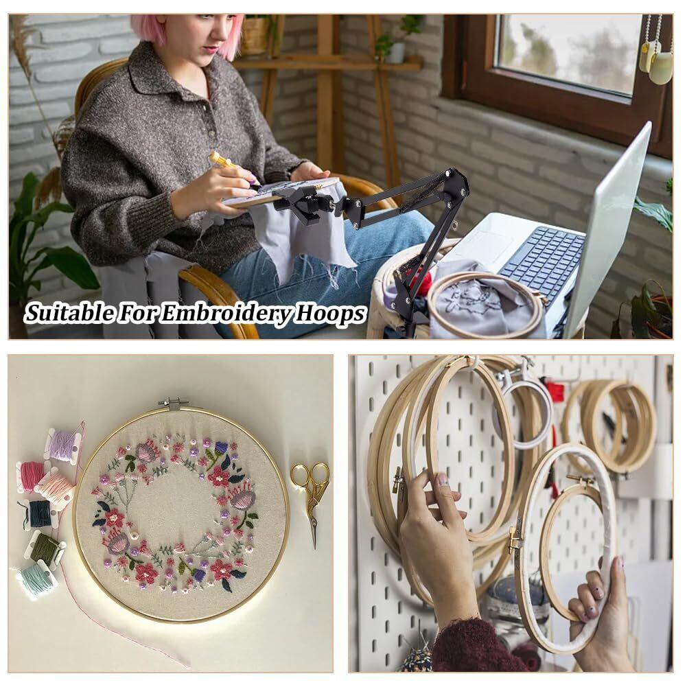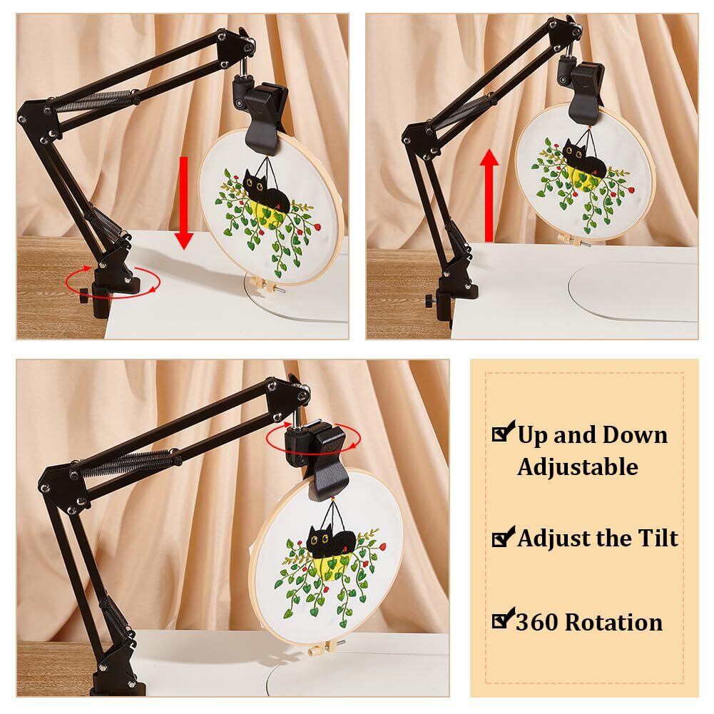 幅広い用途:クロスステッチスタンドは、デスクトップ、ワークトップ、テーブル、ナイトテーブルなどで幅広くお使いいただけます。クリップが刺しゅう枠をしっかりと固定し、ズレを防ぎます。