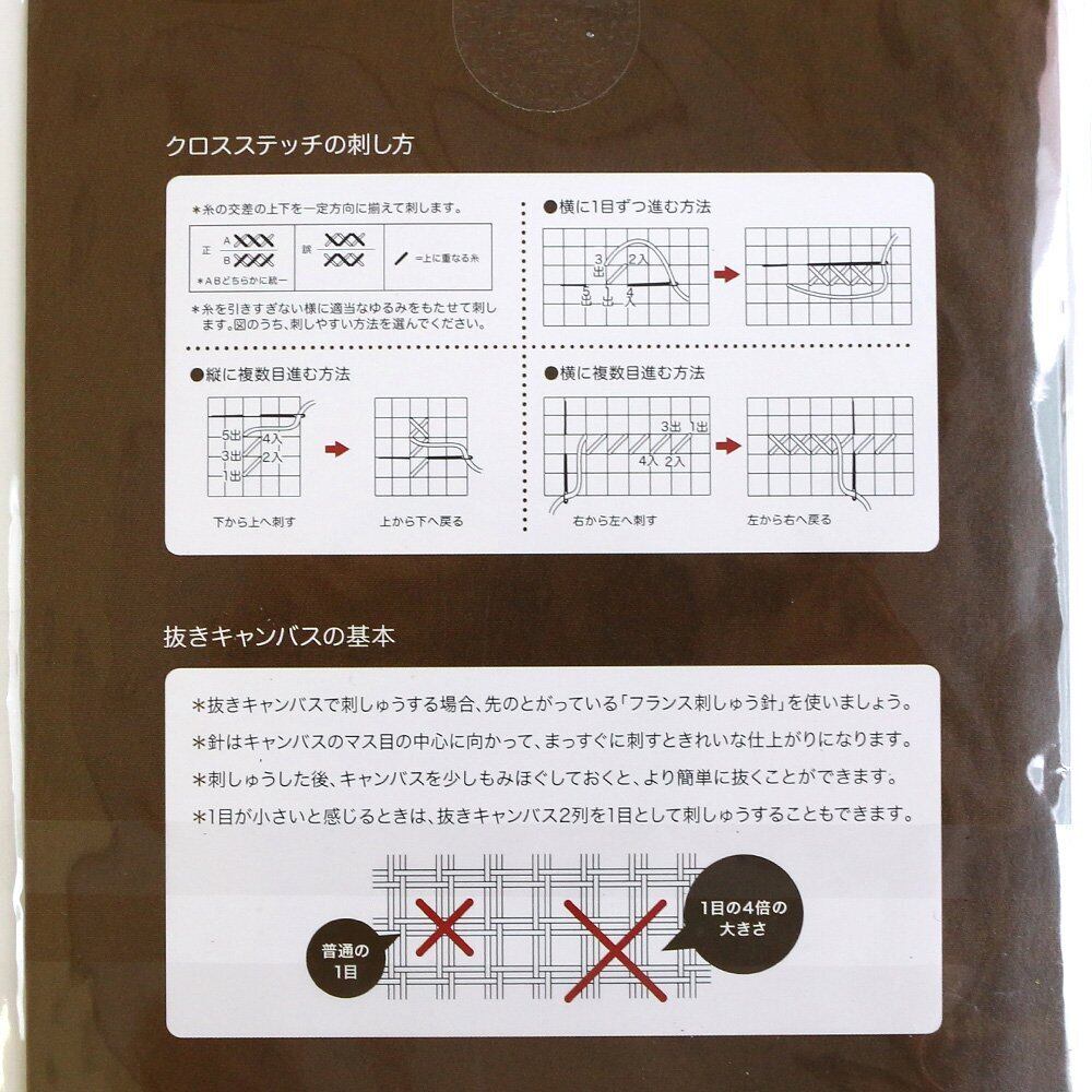 クロスステッチをしたい素材に抜きキャンバスを切ってしつけし、キャンバスの上からクロスステッチをする。刺し終わったら、しつけをとり、抜きキャンバスを引き抜いて、刺繍の完成。