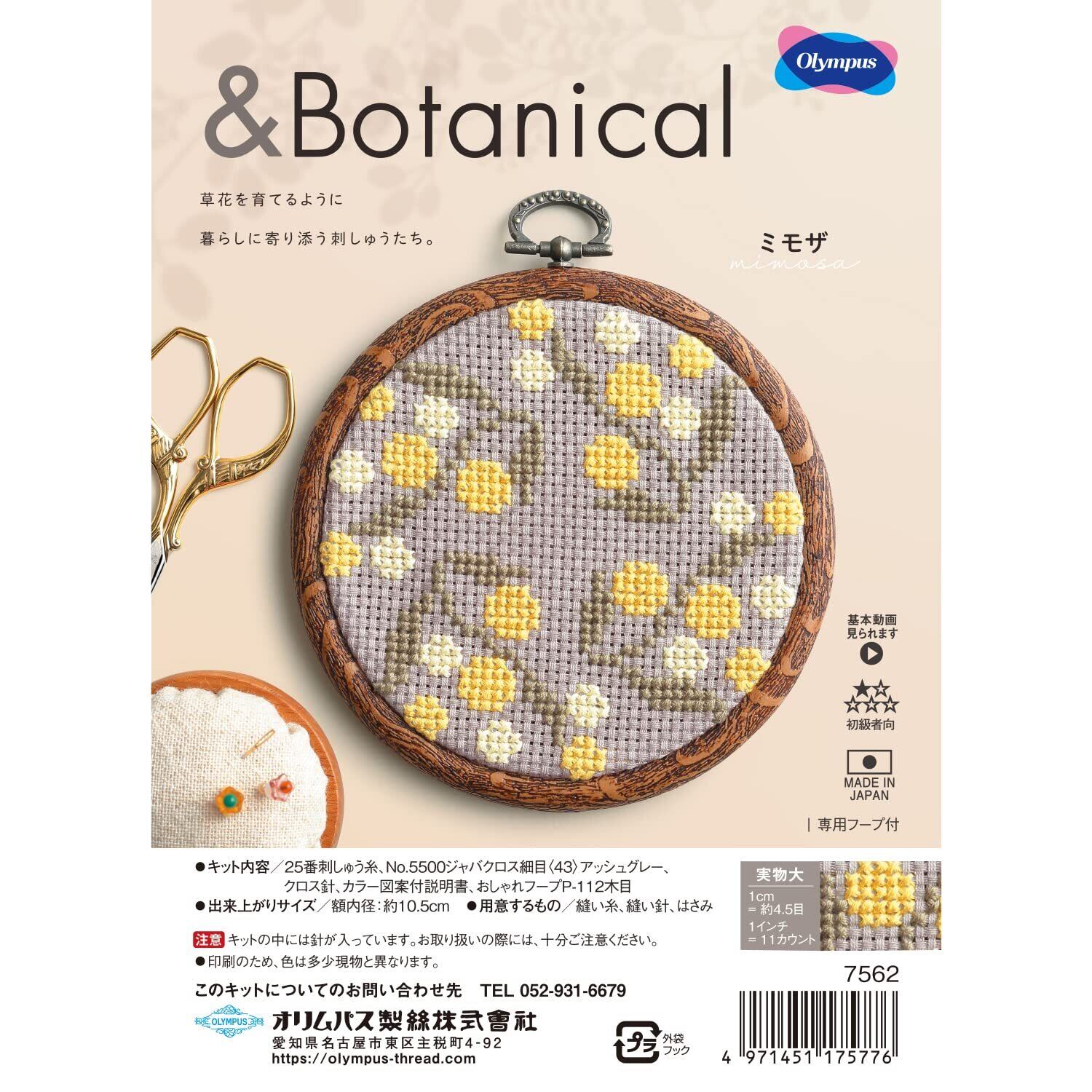 オリムパス製絲 クロスステッチキット &Botanical ミモザ 7562 専用フープ付