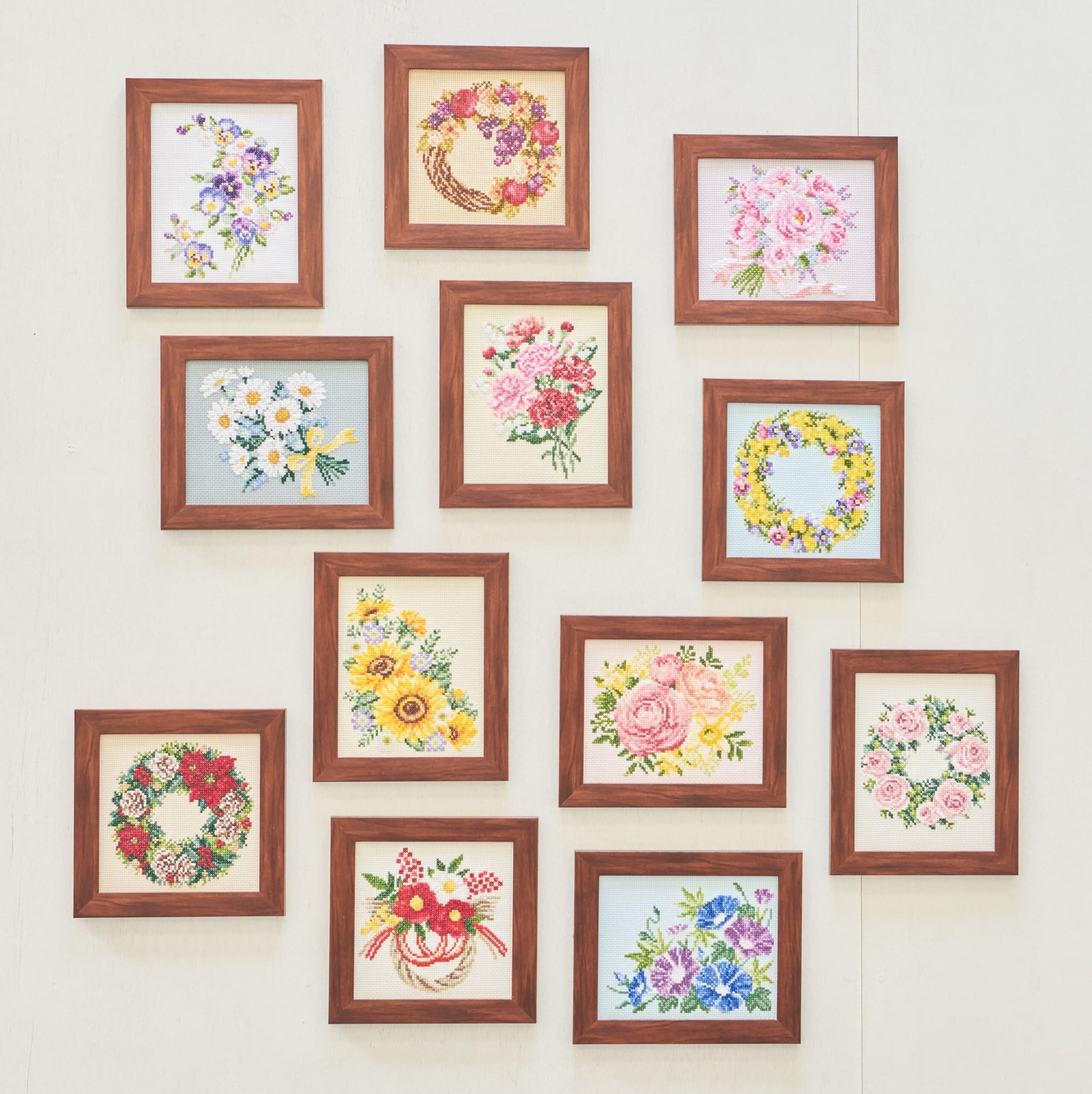 12ヶ月それぞれの季節の花々を、美しいグラデーションで華やかに表現できる刺しゅうキットです。