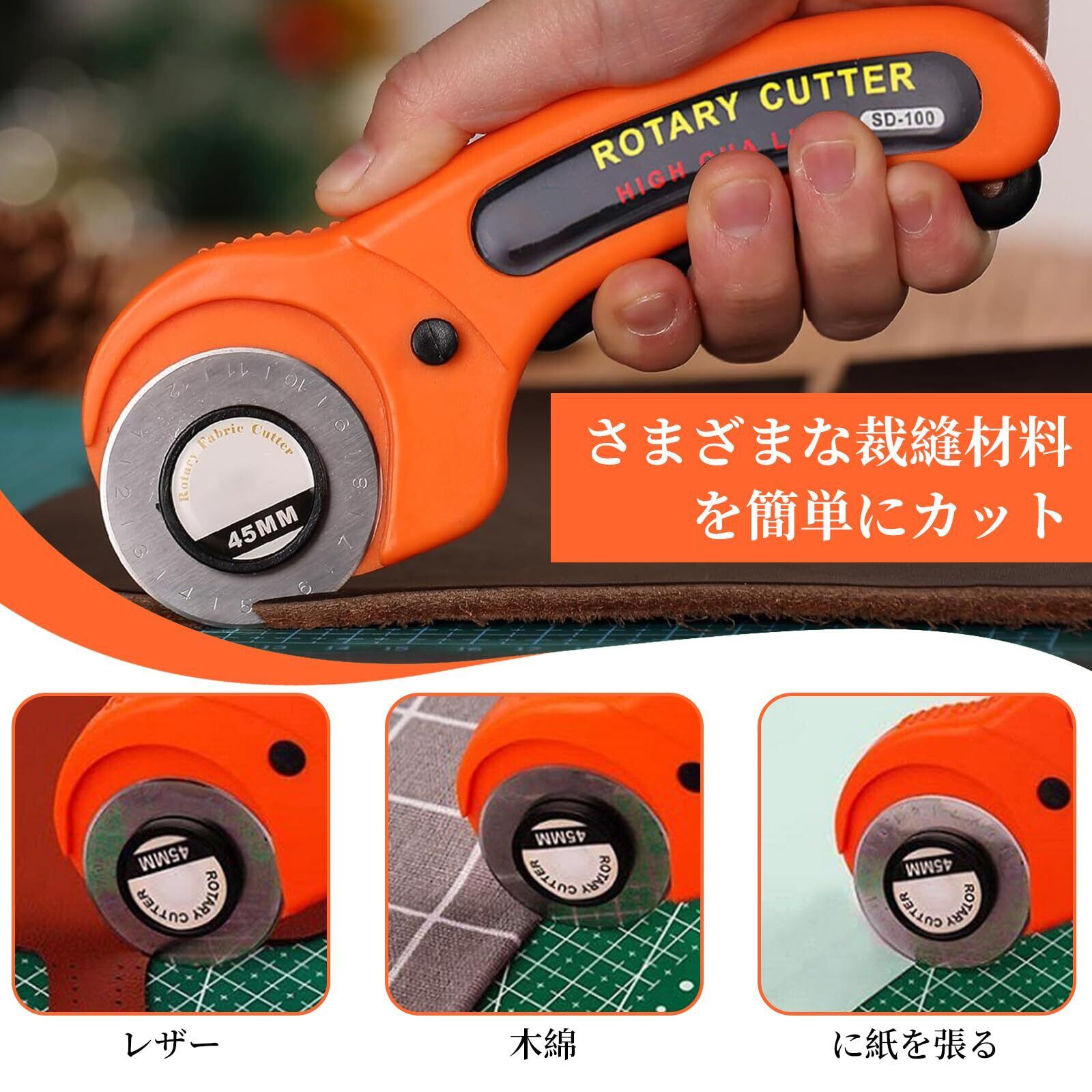 【新着商品】Coollooda 45mmロータリーカッター 4枚替刃付き 安全設計 左右両用 - 布・革・紙・プラ板切断 多素材対応 円切りカッター 手芸工具 革細工 裁縫道具 | wakuwakuland