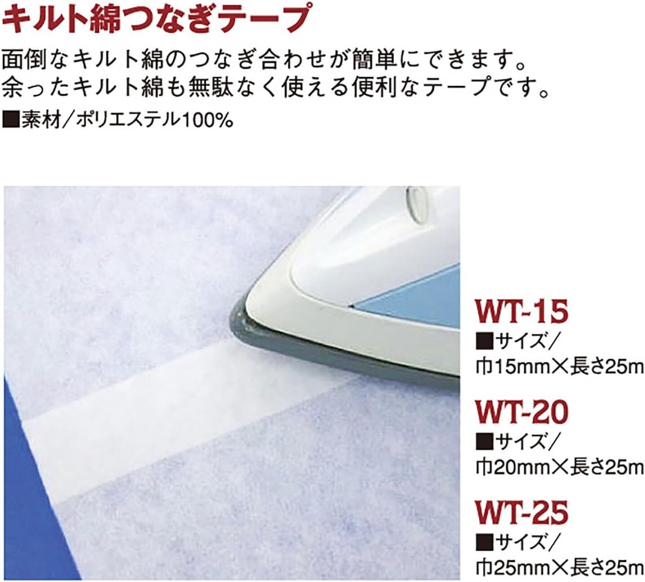 面倒なキルト綿のつなぎ合わせが簡単にできます。余ったキルト綿も無駄なく使える便利なテープです。