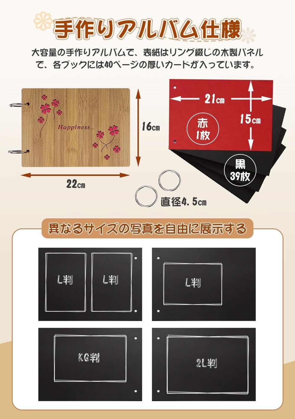 【心のこもったデザイン】アルバムには黒い台紙が39枚ついており、たくさんの写真を保存することができます、台紙の不足を心配する必要はありません。アルバムは2つのリングで綴じられており、簡単に取り外すことができ、自由に台紙を交換または追加することができます。