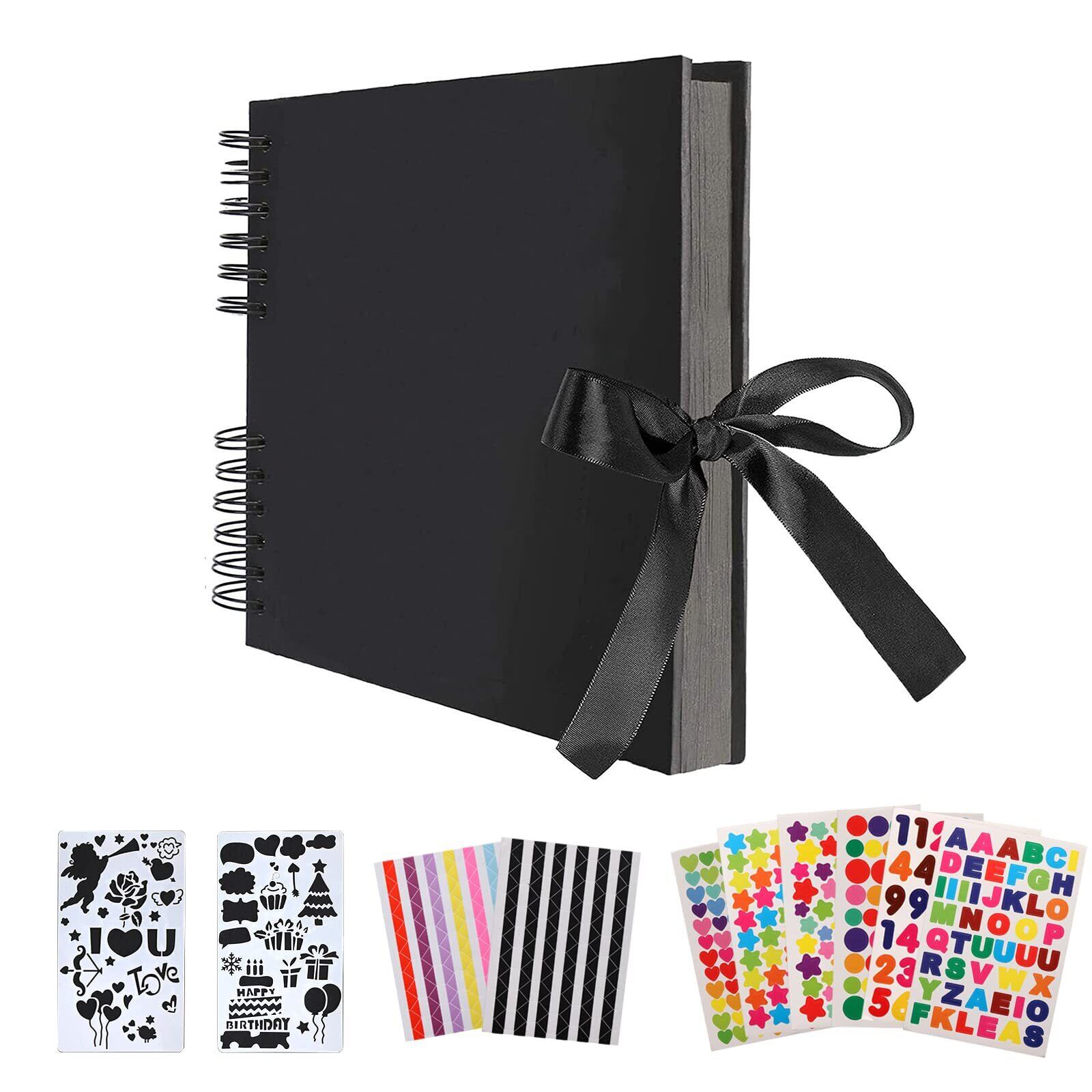 AIOR 手作りアルバム スクラップブック フォトアルバム 大容量 DIY 台紙 40枚80ページ 31CMx21.5CM 写真アルバム 手作りフォトブック 切り抜き帳 おしゃれ 写真収納 記念日 誕生日 結婚式 ギフト 黒色