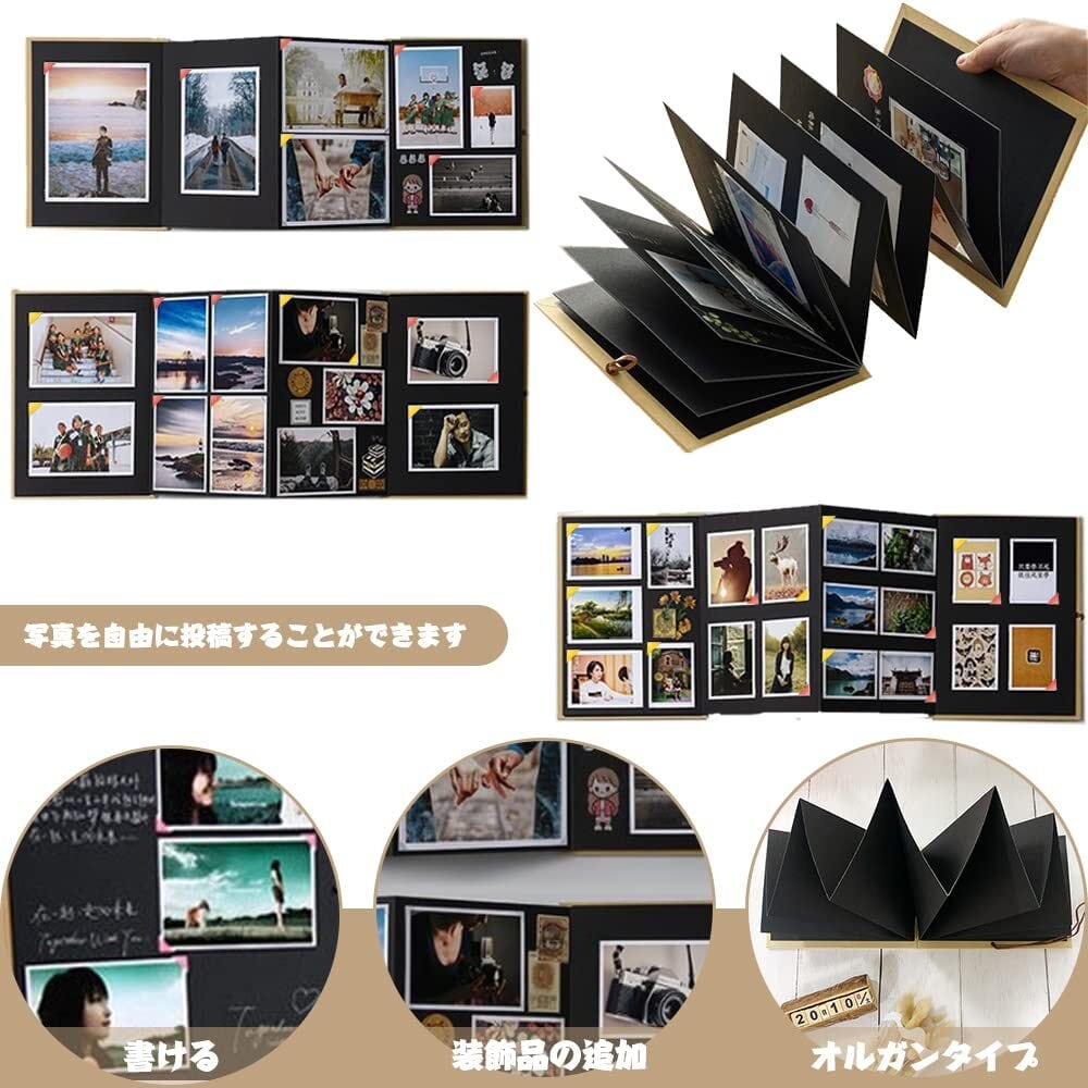 【2022最新】手作りアルバム アルバム DIY アコーディオン式アルバム 誕生日 アルバム スクラップブック 記念写真集 折りたたみアルバム 誕生日プレゼント フォトアルバム 卒業祝い 夫婦のおみやげブックレット 結婚記念日 贈り物 グローイングアップアルバム 恋愛/結婚記念日/卒業/誕生日/ホリデーギフトなどを作る 3枚コーナーステッカー 15*21cm(ブラック)