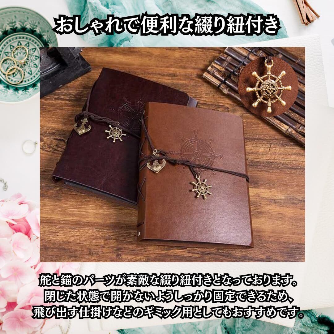 【自分だけのオリジナルアルバムを作成可能!】革製の表紙に羅針盤の意匠がポイントの、ヴィンテージ感溢れるスクラップブックです。様々な大きさの写真を好きな場所に貼り付けられるため、自分だけのオリジナルDIYアルバムを作成することが可能です。日々の大切な思い出の保存に是非ともお役立てください。