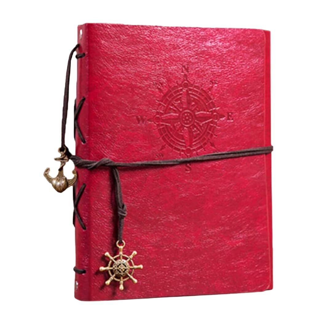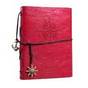 Charmoon アルバム 手作り スクラップブック 写真 ルーズリーフ 黒台紙 革製カバー 羅針盤 航海 A5 30枚 60ページ (レッド)