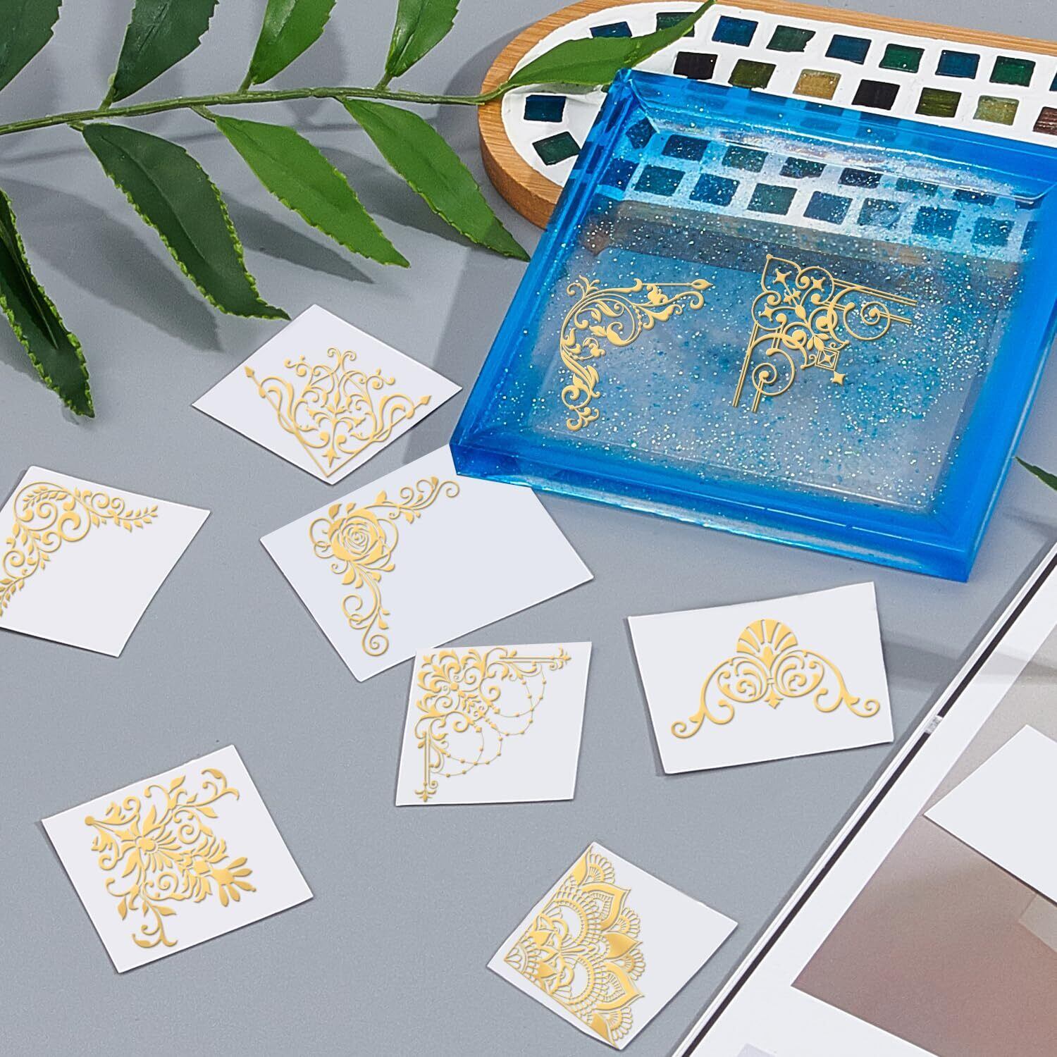 OLYCRAFT 9個9種類 レジンステッカー 金属製シール コーナー フレーム メタルシール 金属ステッカー DIY UVレジン封入用 ハンドメイド アクセサリーパーツ 封入素材 デコパーツ 手芸材料 手作り素材 ゴールド4x4cm