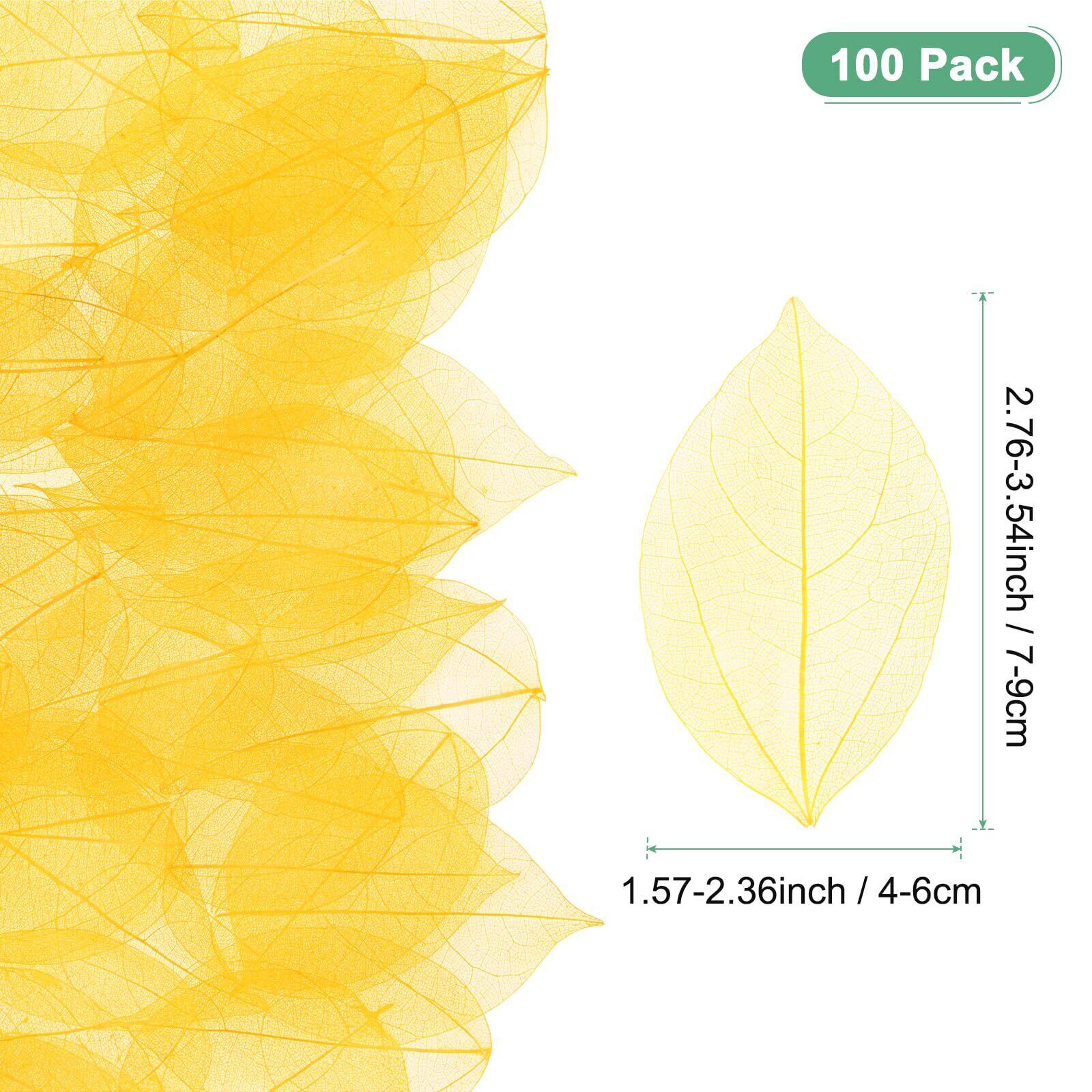 M METERXITY 100パックのスケルトンリーフ、天然ゴムツリーの乾燥押し葉、レジン/ DIYクラフトカード/スクラップブック/ウェディング用、小さな葉の装飾[8-9cm、イエロー]