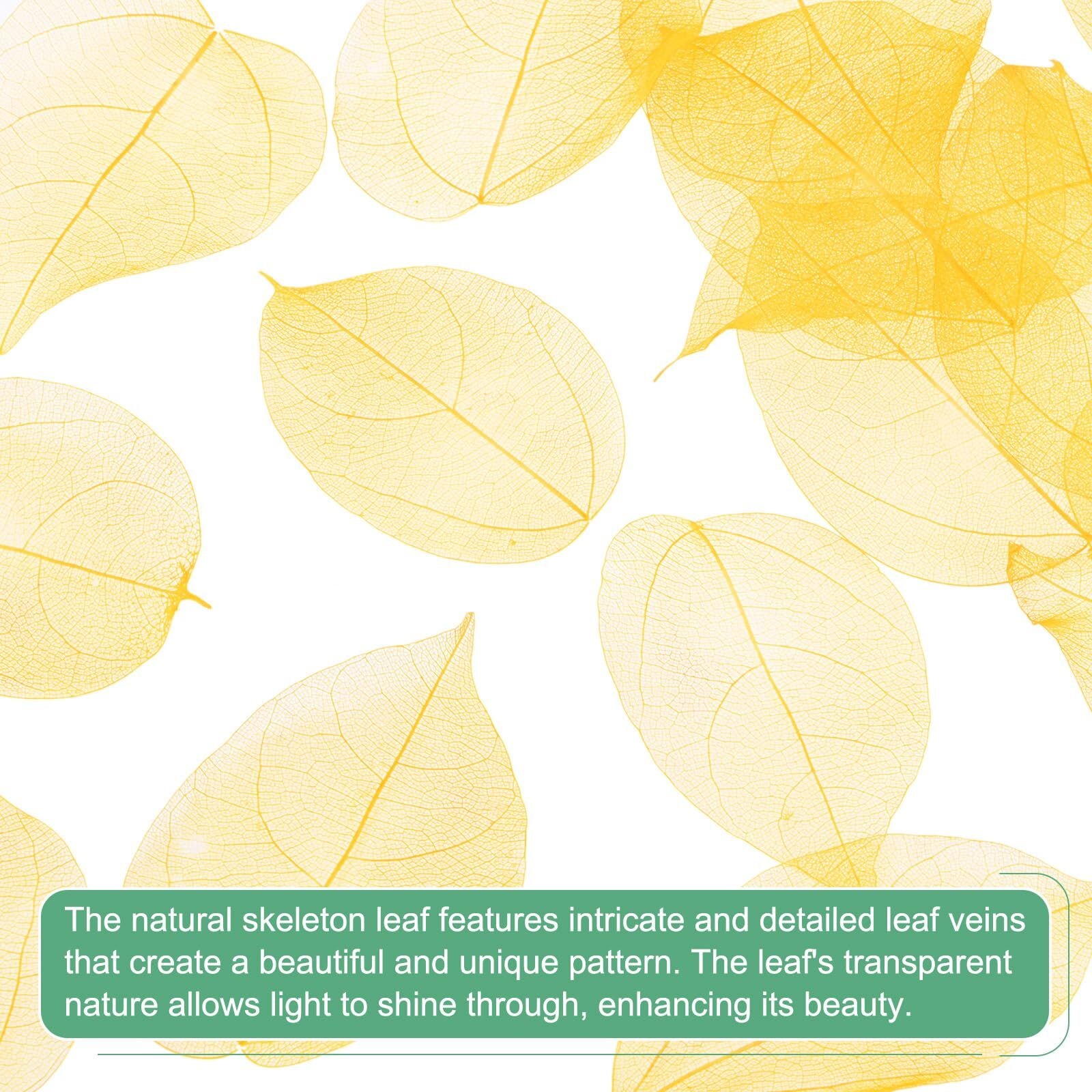 ・【美しいデザイン】: イエローの色合いで彩られたスケルトンリーフは、自然の美しさを引き立てるユニークなアイテムです!そのまま使っても、レジンに封入しても、どんな作品にもぴったりマッチします。