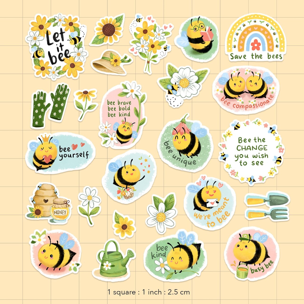 【在庫処分】Navy Peony 甘いミツバチのステッカー (25ピース) – 春モチーフ、やる気が出る | 子供、教師、ギフト用の黄色いマルハナバチ名言ステッカー