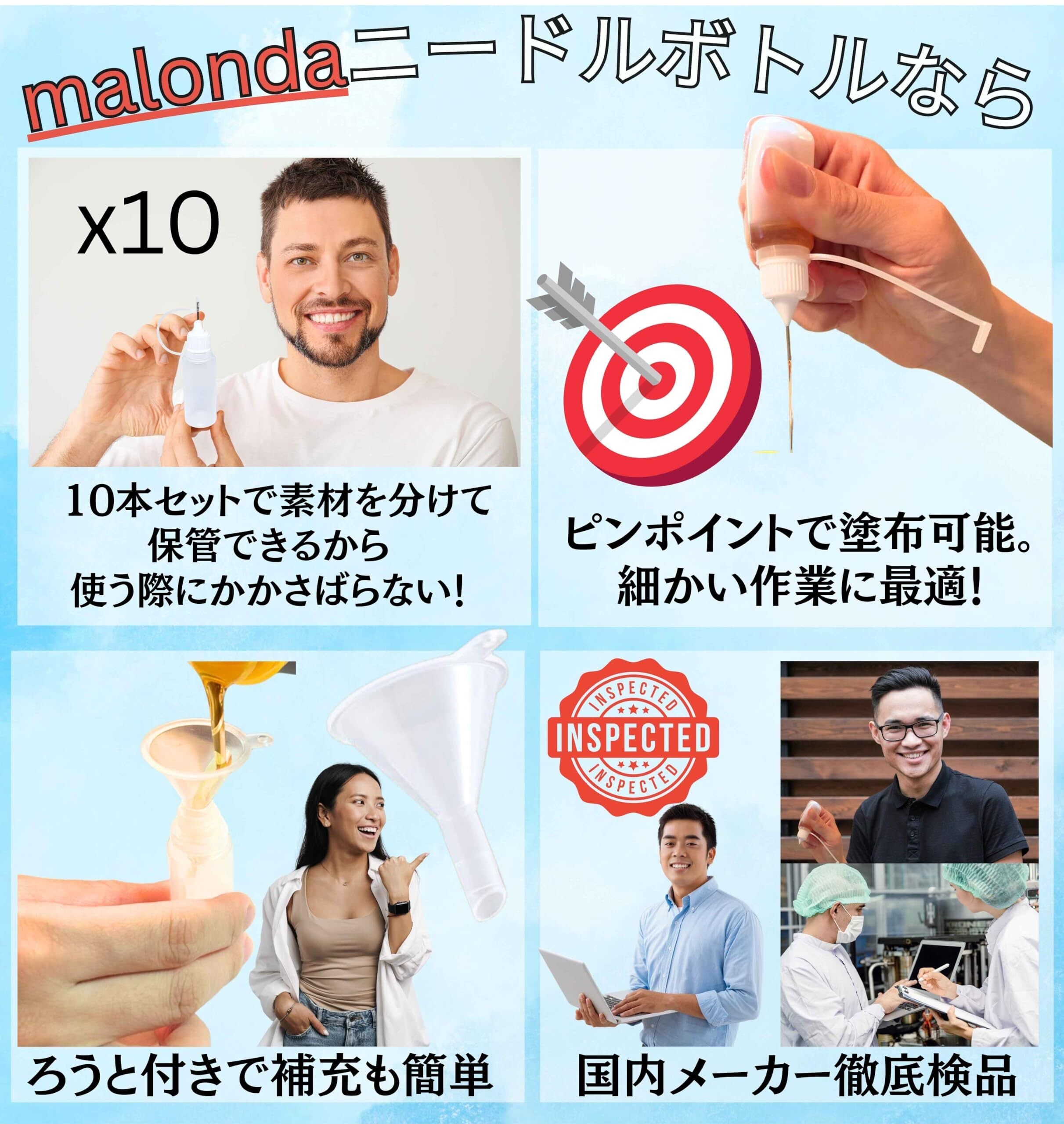 【2022最新】ニードルボトル 全8サイズ [5ml/10ml/15ml/20ml/30ml/50ml/100ml/120ml] 【MADE IN JAPAN】 ドロッパー ボトル 10本 ろうと付 (30ml) | wakuwakuland