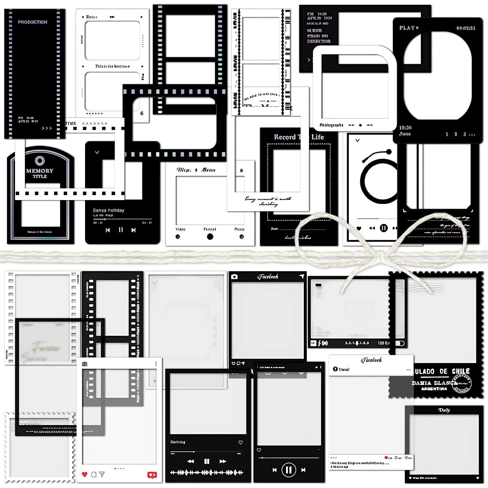【数量限定】3 パック フィルムストリップ ステッカー 板紙 カットアウト コラージュ ペーパー フレーム ボーダー ブラック ホワイト スクラップブッキング用品 クラフト カード作成用 ジャーナリング フォトアルバム (Episode) | wakuwakuland