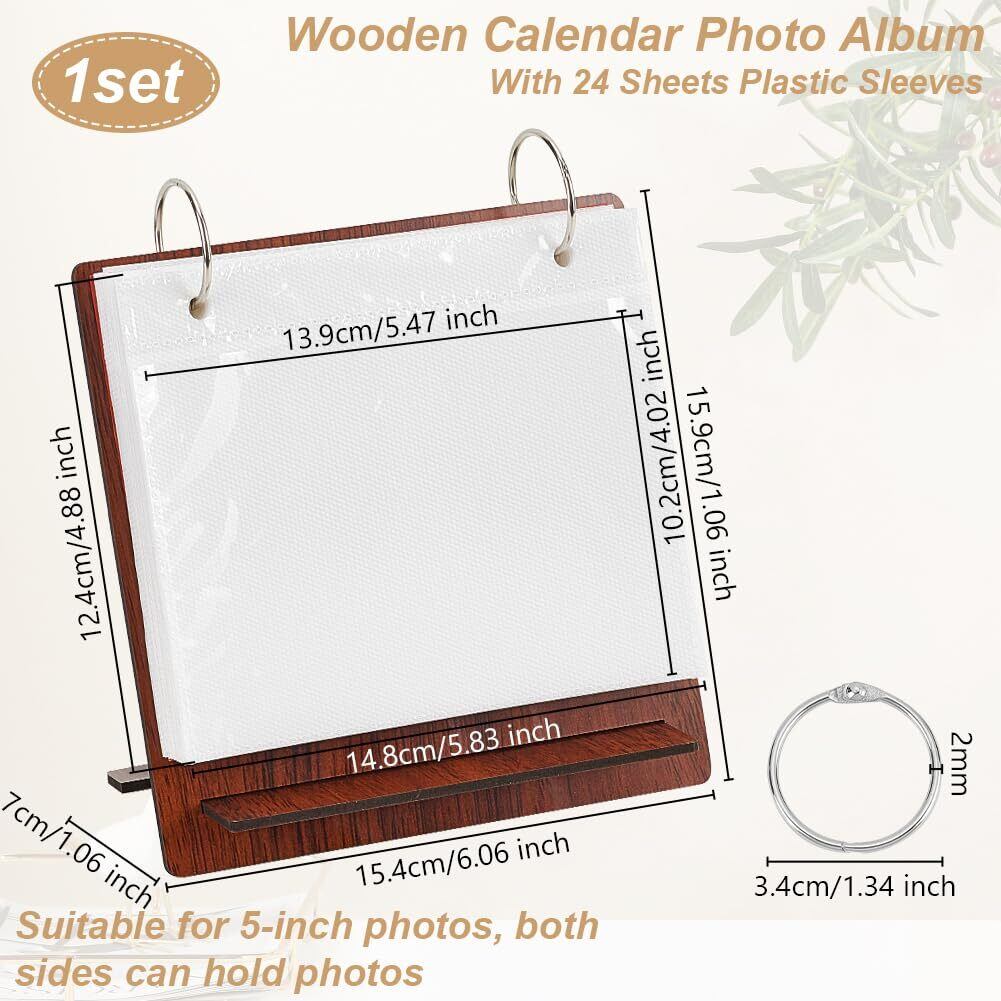 OLYCRAFT カレンダー写真アルバム 木製 卓上ミニフォトスタンド 写真立て カレンダー式 オフィス フォトカードホルダー 卓上 装飾 124x148x0.3mm 茶色