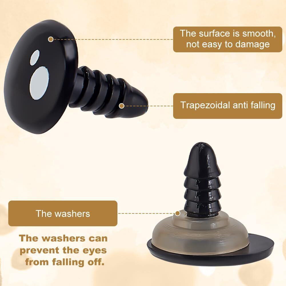 生き生きした目:本物の目のように、あなたの動物をよりかわいく見せる。プラスチック製のこの目は、通常の黒い目よりも表情豊かで、光沢のある滑らかな目をしています。