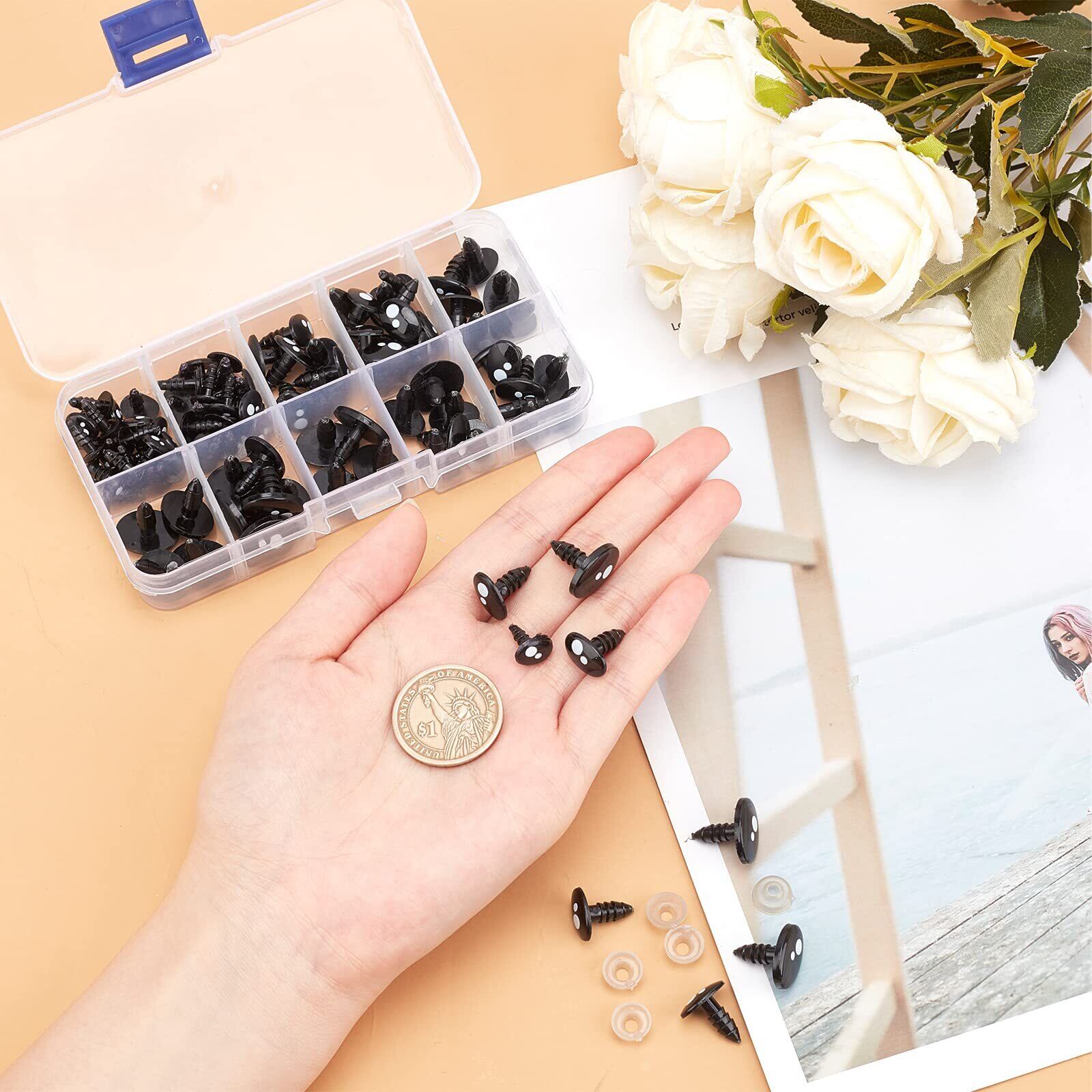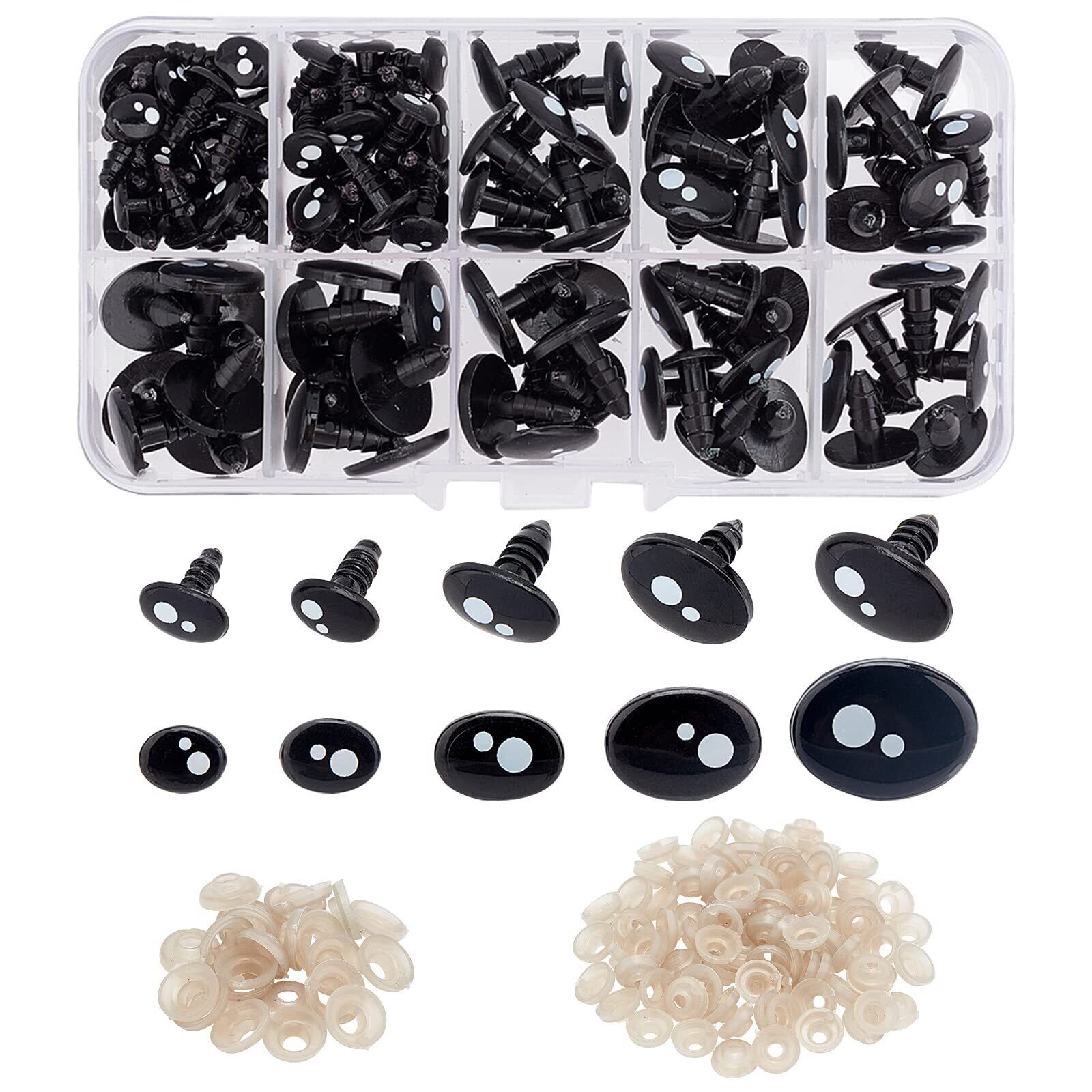 【在庫セール】PH PandaHall 100個セット ぬいぐるみ目 さし目 楕円形 生き生き 人形 ドールアイ 5サイズ 手作り目 プラスチックの目 動物 アイ クラフト ドールメイキング DIY用 手芸 パーツ 材料 ハンドメイド 素材 縫製 ブラック | wakuwakuland