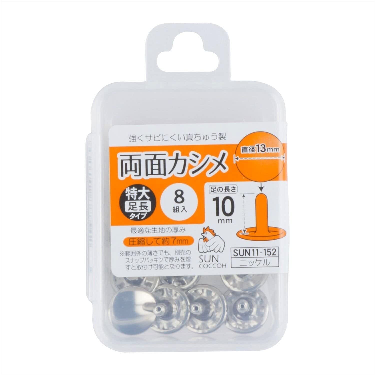 KIYOHARA サンコッコー 両面カシメ 特大・足長 8組入り 直径13mm ニッケル SUN11-152