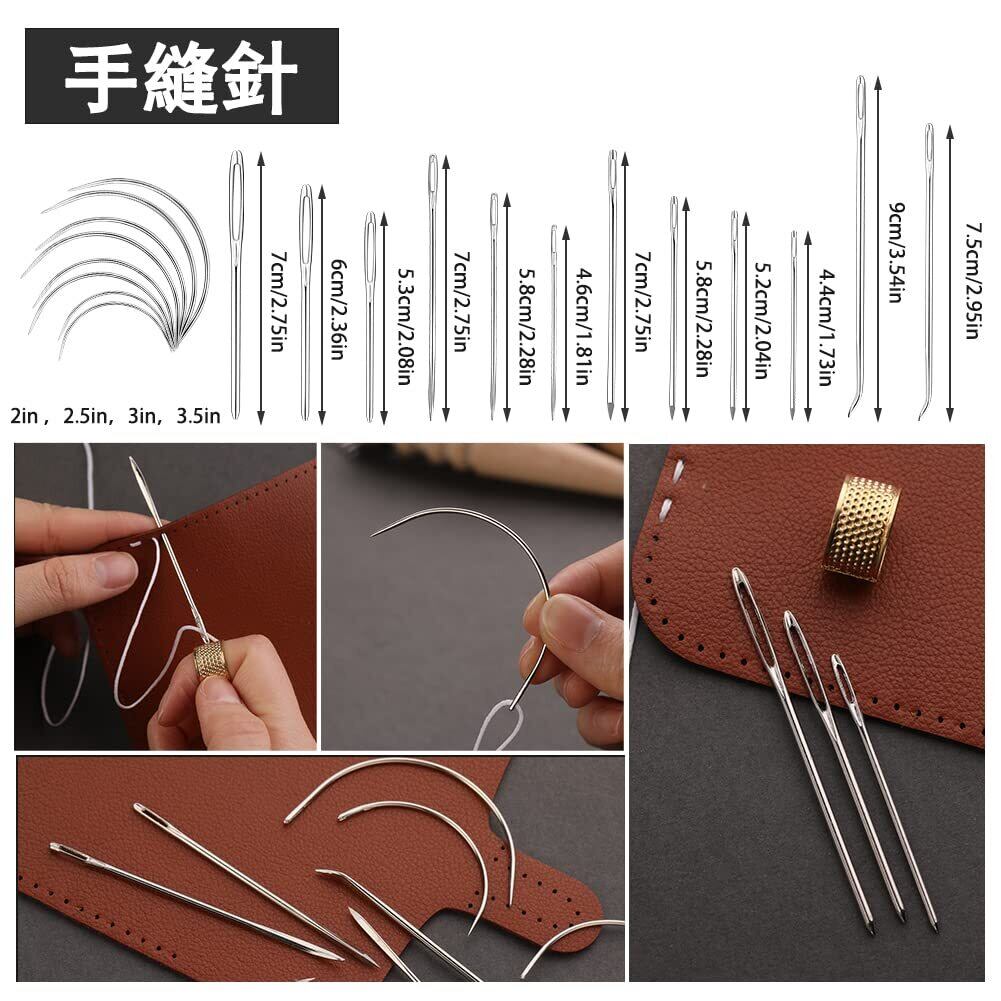 レザー縫製キット:レザークラフトツールセットには、千枚通し、ステッチパンチ、調節可能なグルーバー、縫製トレースホイール、指ぬき、はさみ、ワックス糸、およびさまざまな種類のレザー縫製針が含まれており、レザー縫製プロジェクトのすべてのニーズを満たすことができます。