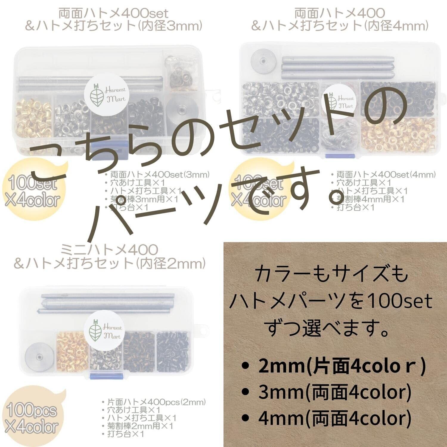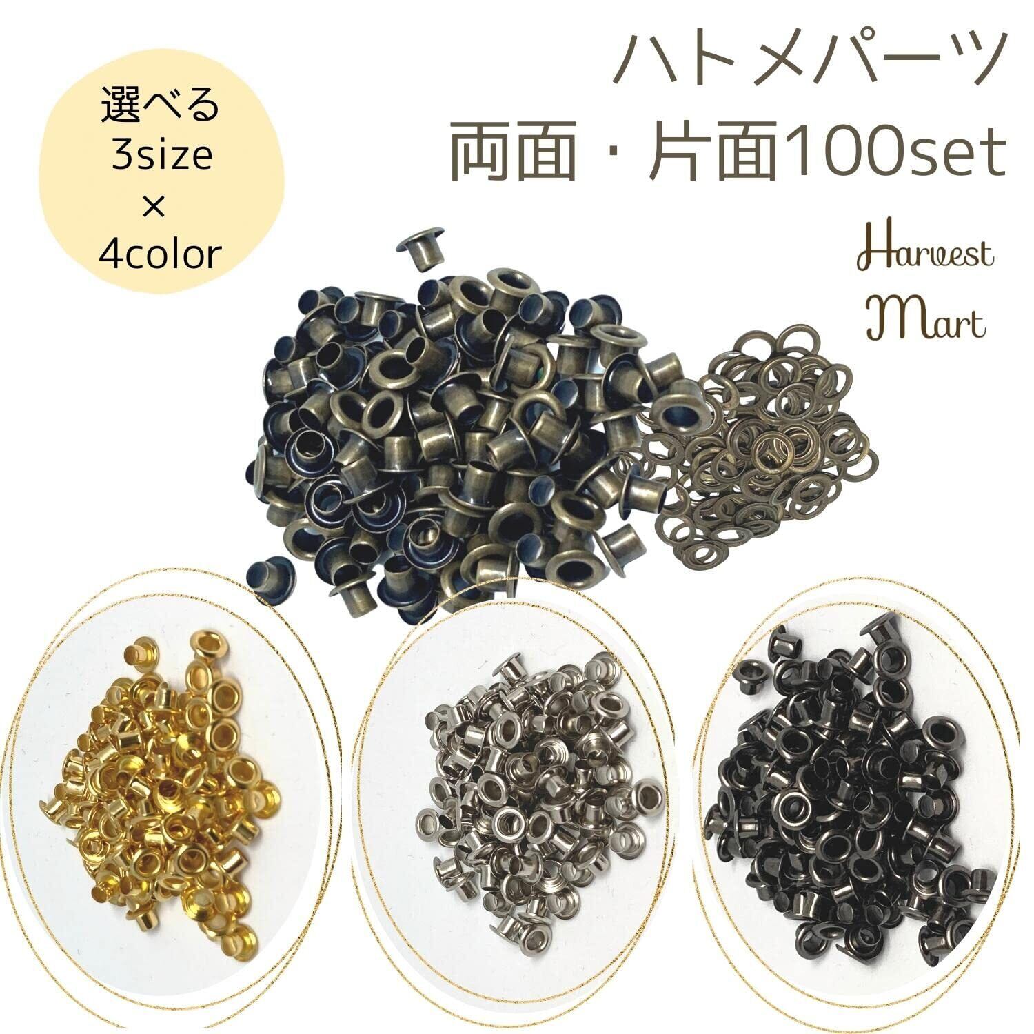 「Harvestmartのレザークラフト ハトメ セット」は、手作りやDIYプロジェクトに欠かせないアイテムです!両面ハトメの4mmサイズが100セット入ったこのパッケージは、さまざまな用途に対応できる便利なパーツです。