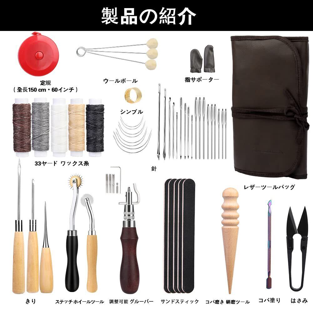 お得な工具セット: 使用の範囲:皮、革、キャンバスなどの素材を縫うことできます。レザークラフトの専用道具セットで、職人にも初心者にも適します。安心の国内配送、にて迅速に対応させていただきます