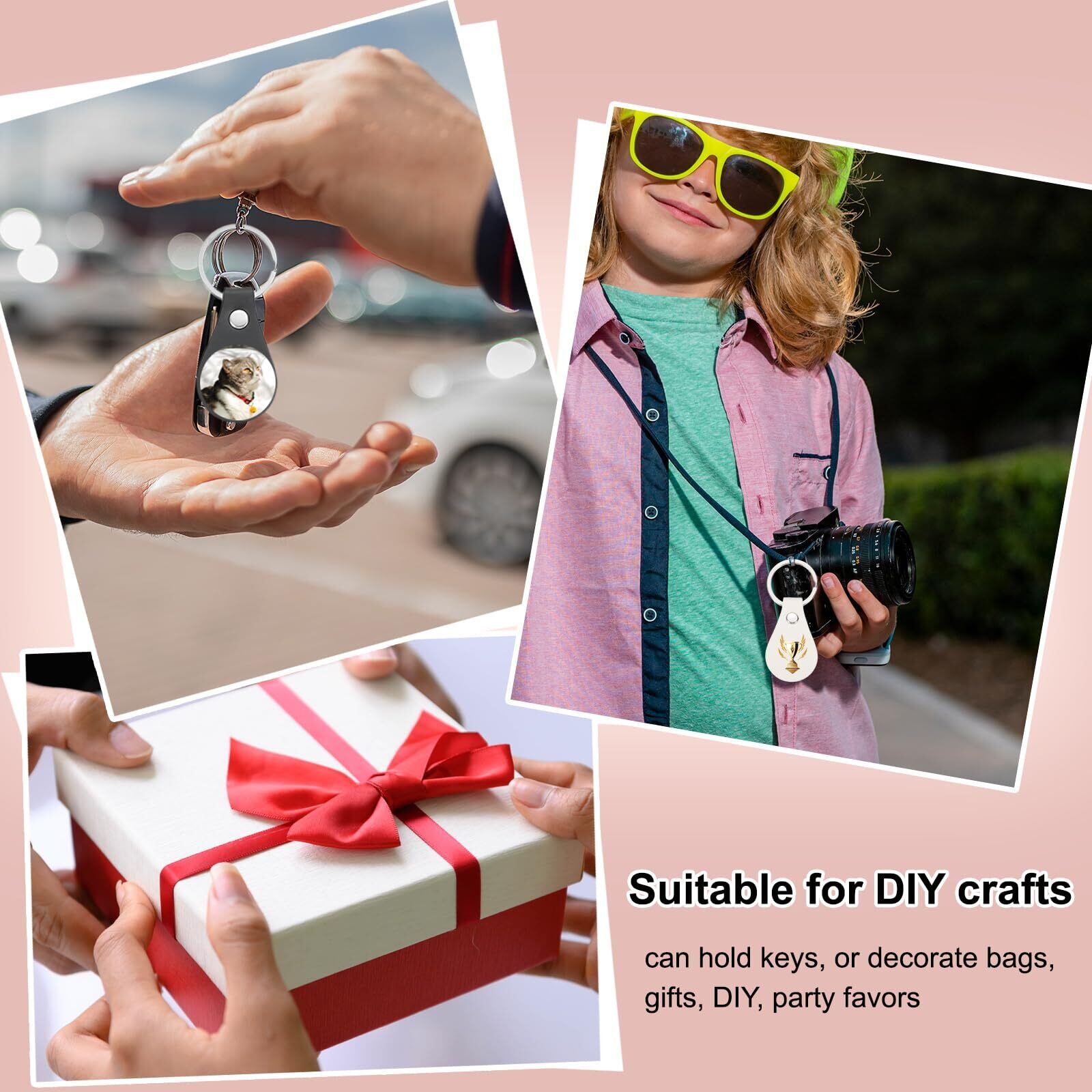 このDIYキーチェーンキットにはリベットとリングが付属しており、キーチェーンとして使用したり、バッグや荷物に吊るすのに最適です。個人用、ギフト用、さらにはクラフトプロジェクトにも適しています。