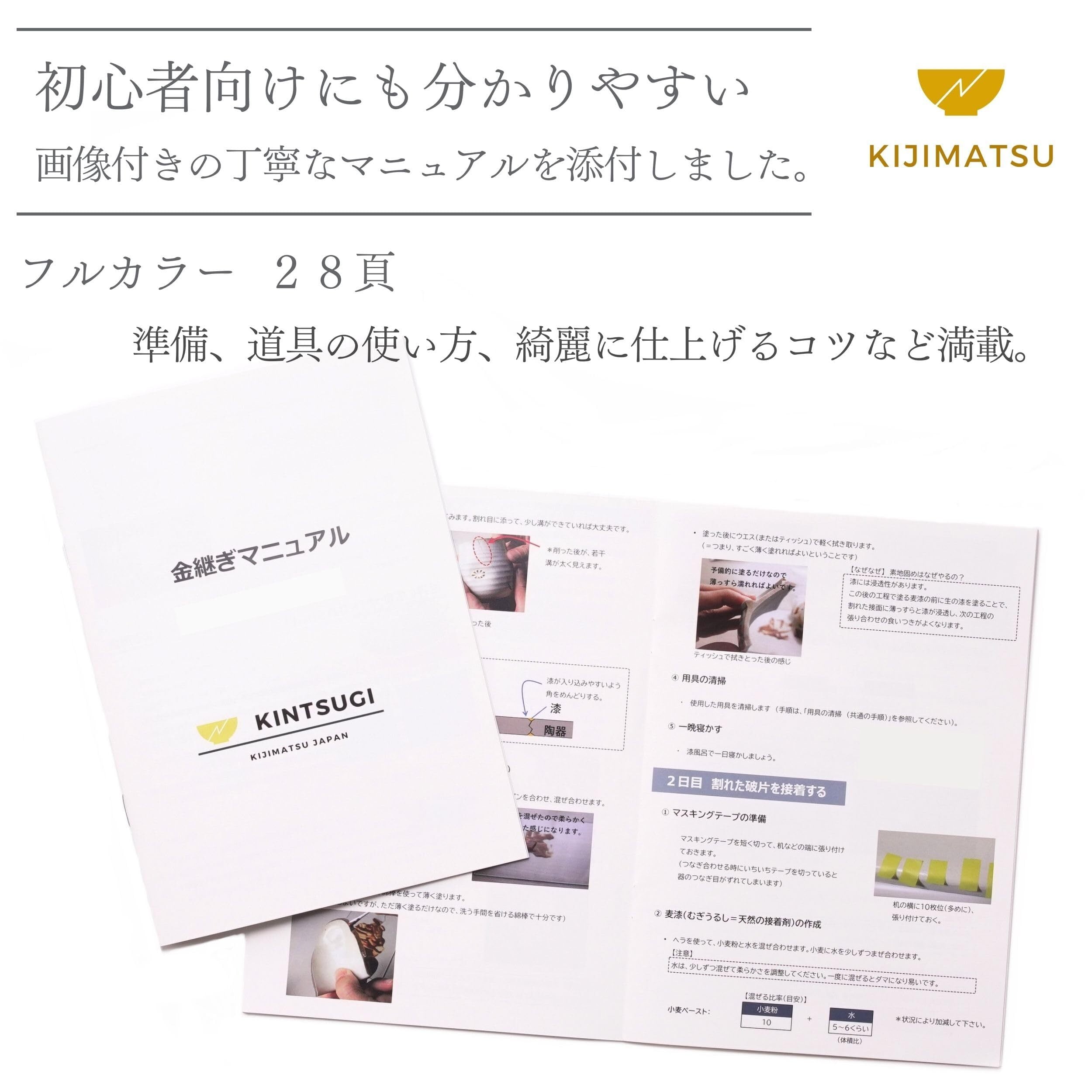 【数量限定】[KIJIMATSU] 簡単 初心者向け 簡易金継ぎ フルセット 真鍮紛使用 金継ぎキット 金継ぎセット 【初心者にも分かりやすい丁寧マニュアル付き】
