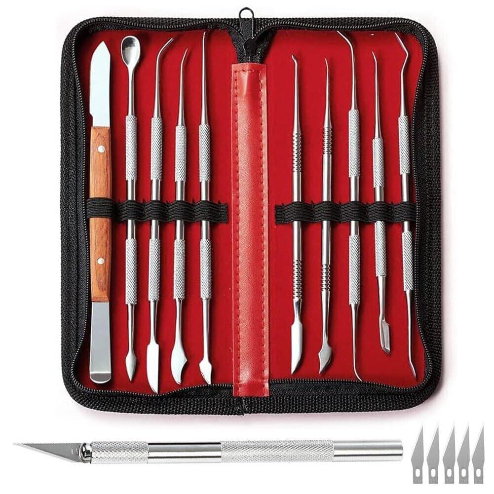 スパチュラ セット 造形 粘土細工 ステンレス製 ヘラ 11本セット 初心者~上級者 専用ケース付き 収納ケース付き