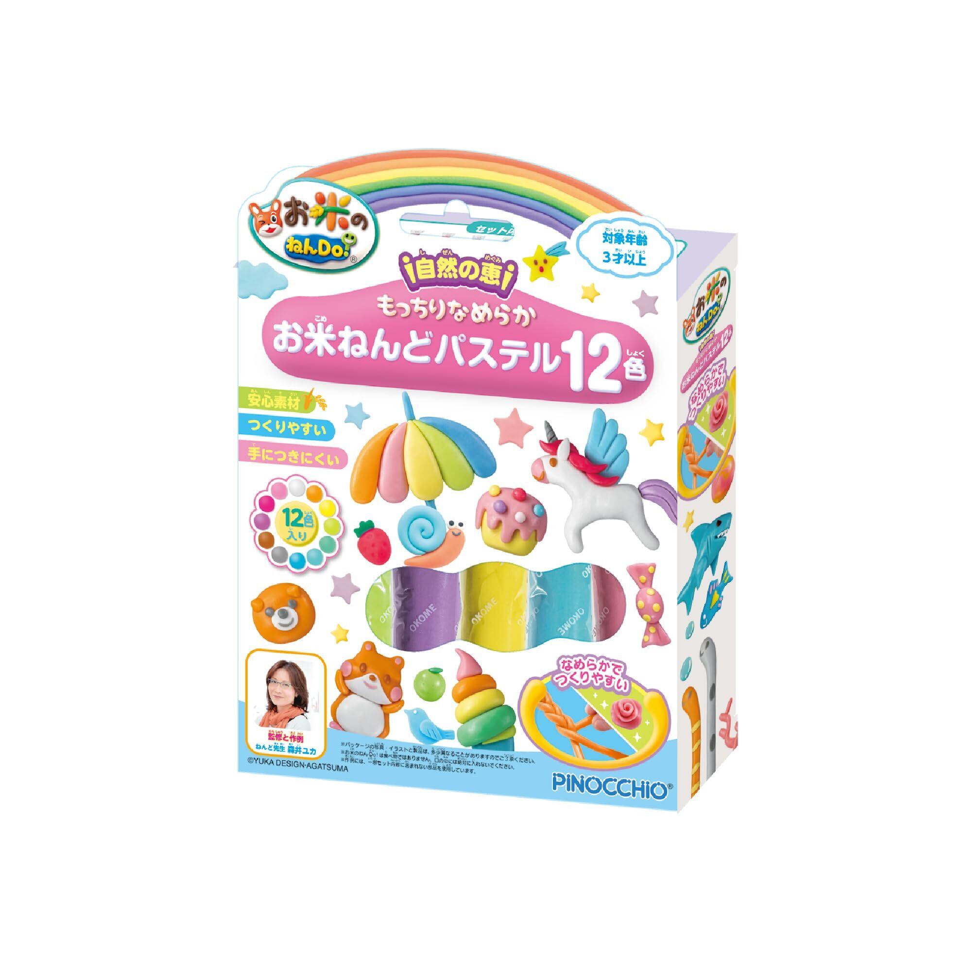 もっちり感触!なめらかでのびがよく、いろいろな形が作りやすいお米のねんどのパステルカラー12色セットです。