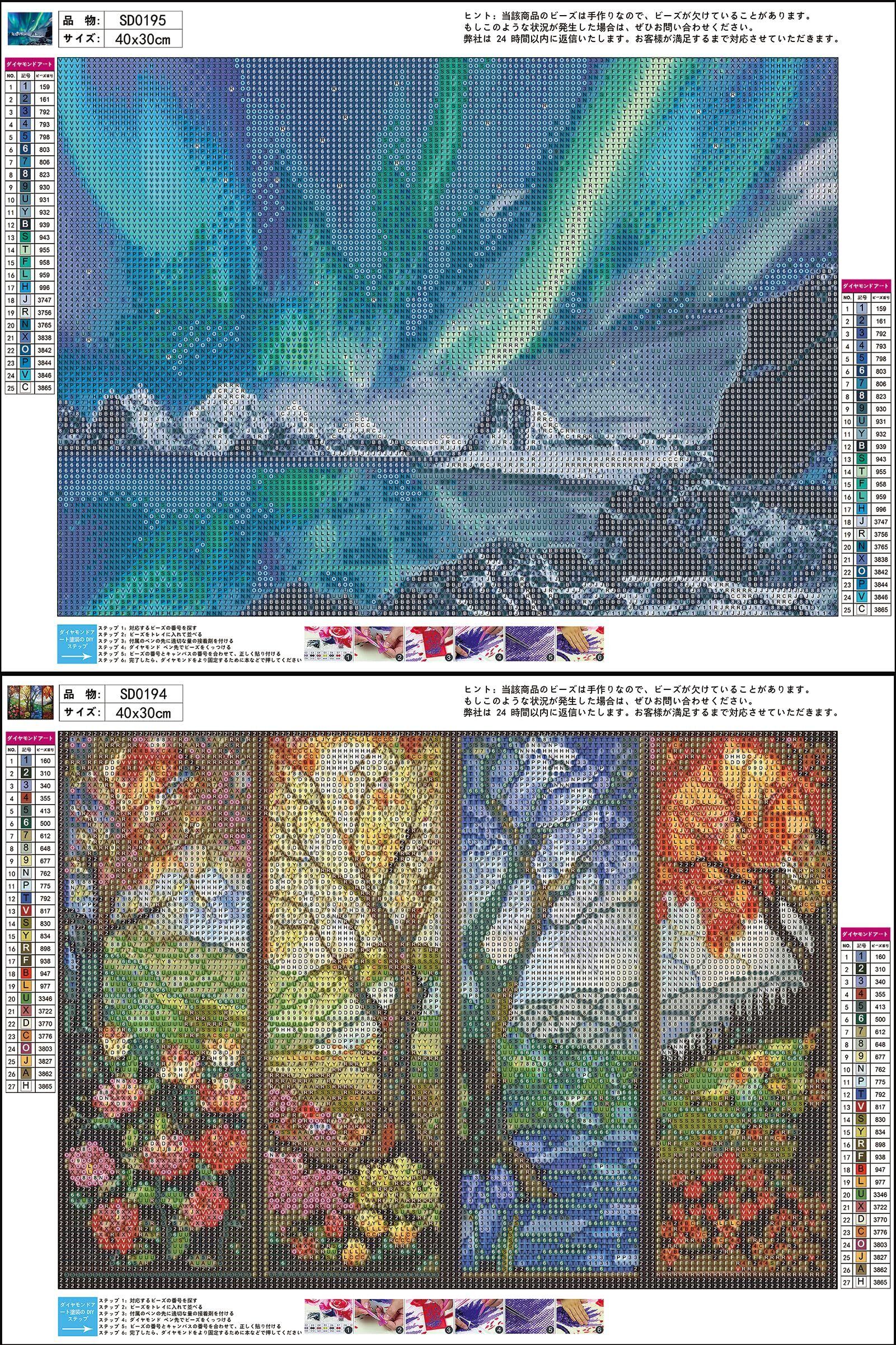 【新春セール】Amyaker ダイヤモンドアート キット 四角いビーズ 全面 2個セット 日本語キャンバス ダイアモンドビーズ絵画キット DIY 手作り絵画 モザイクア 5D モザイクアート ダイヤモンド塗装 全面貼り付けタイプ 40x30cm 風景 オーロラ | wakuwakuland