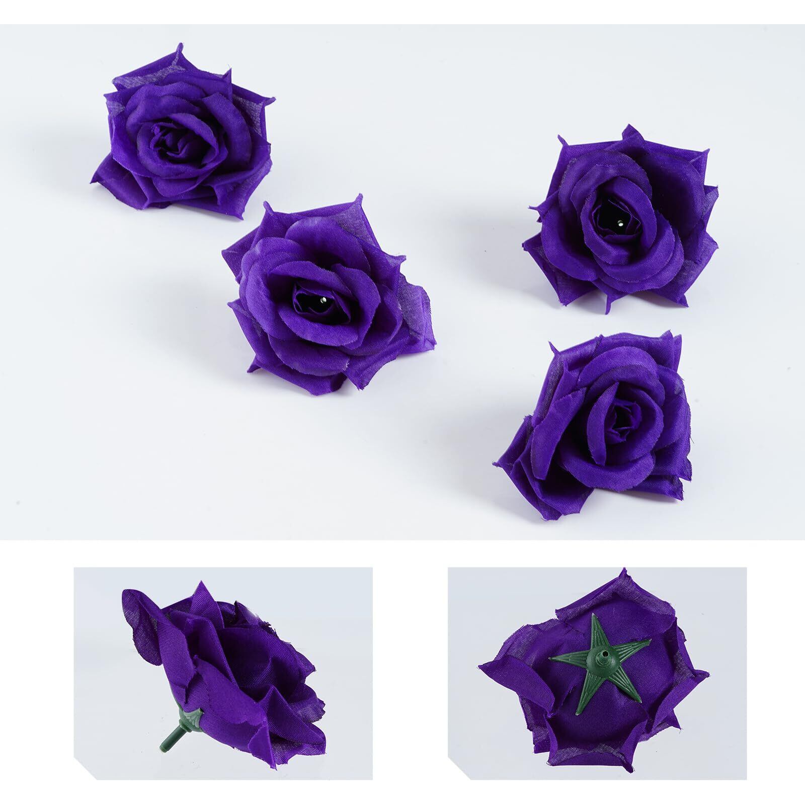 バラ 造花 50本 cnomg 直径8cm 母の日 プロポーズ 結婚式 誕生日 お祝い 演出にローズ 装飾 DIY材料 (ダークパープル)