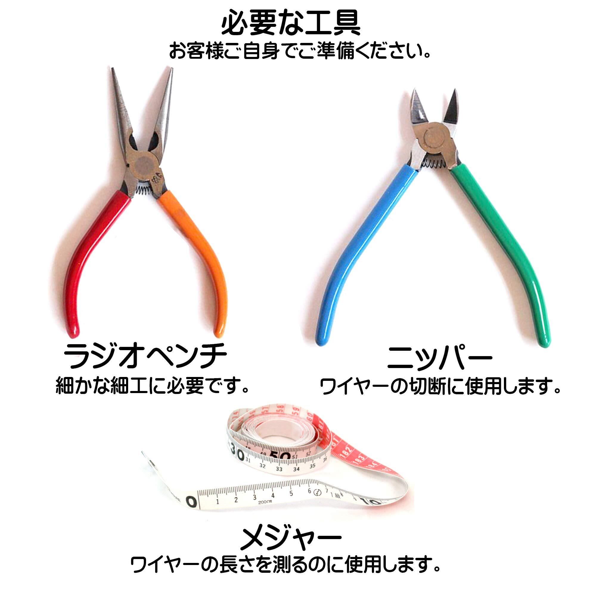 ワイヤーは、手で曲げられますが、細かい細工にはラジオペンチとニッパーが必要となります。