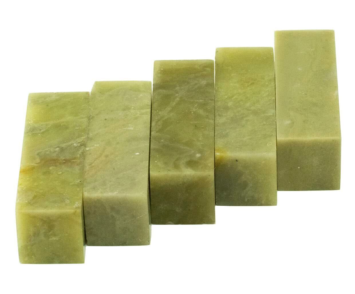 【印材サイズ 約15×15×50mm 5個セット】書道や水墨画、絵手紙作品の雅号印制作に最適な篆刻初心者でも彫りやすい印材です。彫る前に印面を耐水ペーパーで滑らかにしてお使いください。薄緑色の印材で、印材としての歴史も古く、現在も広く使われています。青田石は、「ひび割れ」が発生しております。また、天然の石印材ですので、石質には個体差があります。印刀が入りにくい硬い粒状のものが混入している場合もあります。予めご了承をお願い致します。また、キズ、欠け、歪み等がある場合があります。その際は紙やすり(耐水ペーパー)を利用して修正のうえお使いください。