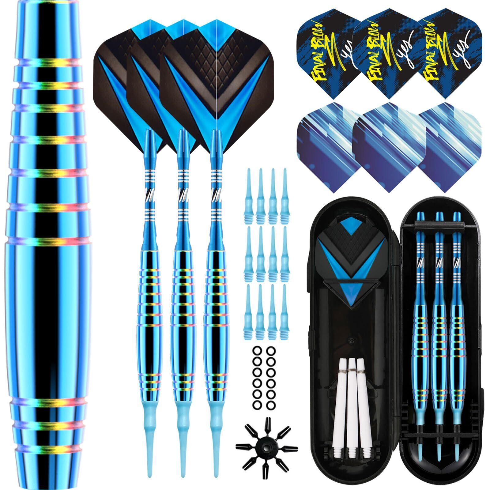 Lavishioプロフェッショナル・ソフトヘッド・ダーツ・セット 19g、プラスチック製ダーツヘッド12個、ダーツフライヤー、シャフト付き (青)