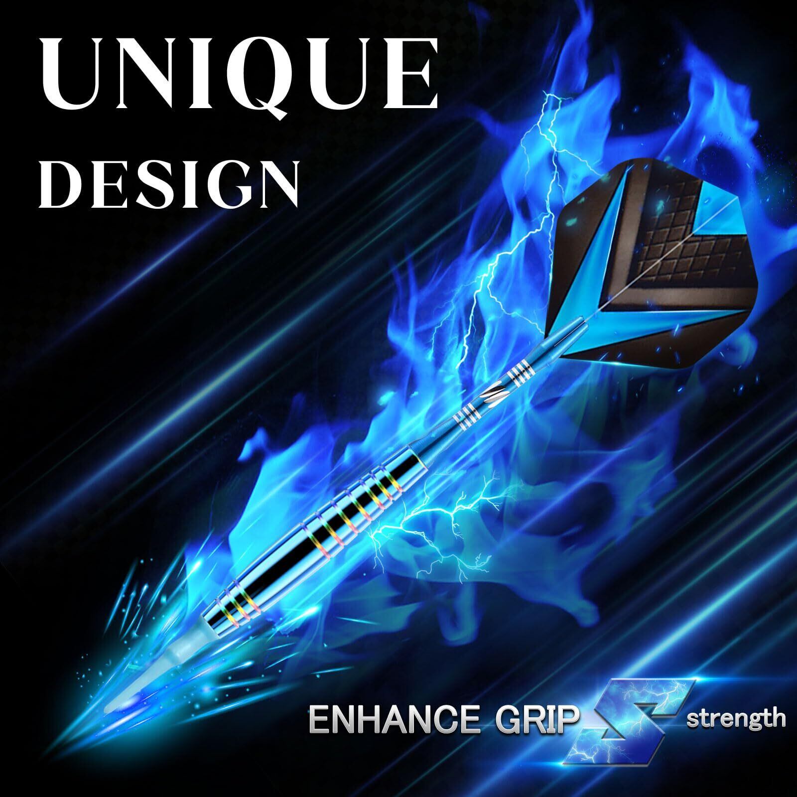 ・【スタイリッシュなデザイン】: 青を基にした洗練されたデザインが特徴で、あなたのプレースタイルを引き立てます。遊び心を持ちながらダーツを楽しむことができます!