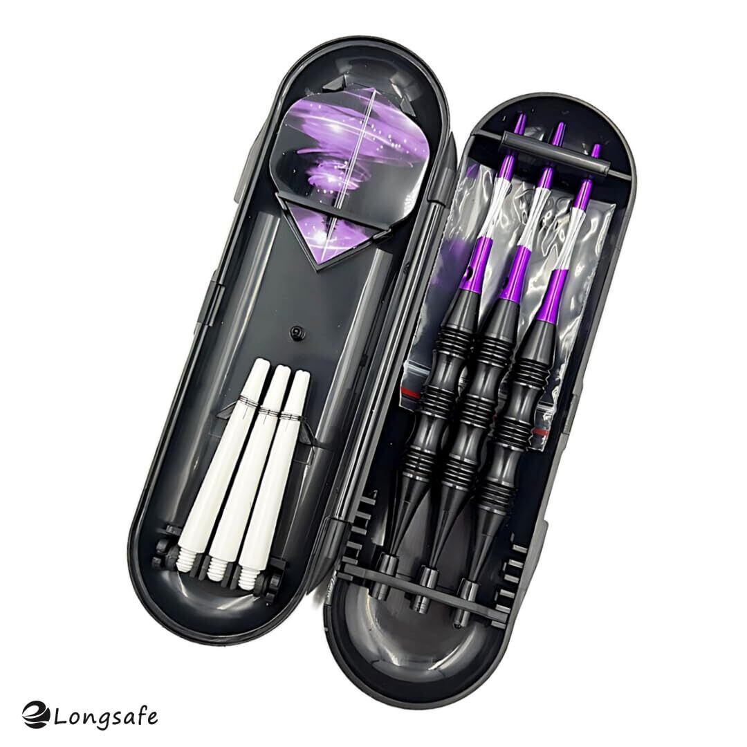 ・【おしゃれなデザイン】: 紫を基調としたファッション性の高いデザインは、プレイヤーの個性を引き立てます!かっこいい見た目で、ダーツに対するモチベーションもアップするでしょう。