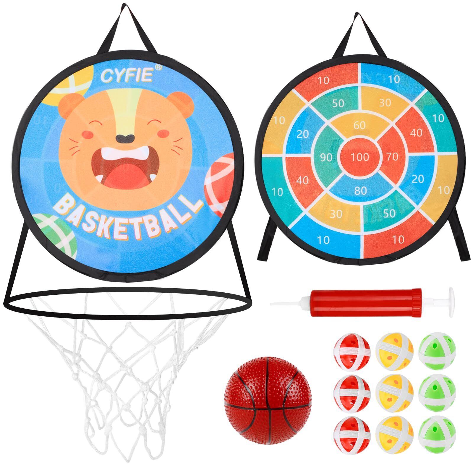 CYFIE ダーツボード バスケットフープ&ゴール付き 直径38㎝ 2in1遊び方 粘着式 投げゲーム シュート練習 両面式 ダーツオモチャ おもちゃ 競技 親子ゲーム 多人ゲーム 投げボール9個 バスケットボール1個 室内室外玩具 折畳み ソフト安全 楽しい 知育玩具 ストレス解消 誕生日プレゼント ギフト 贈り物