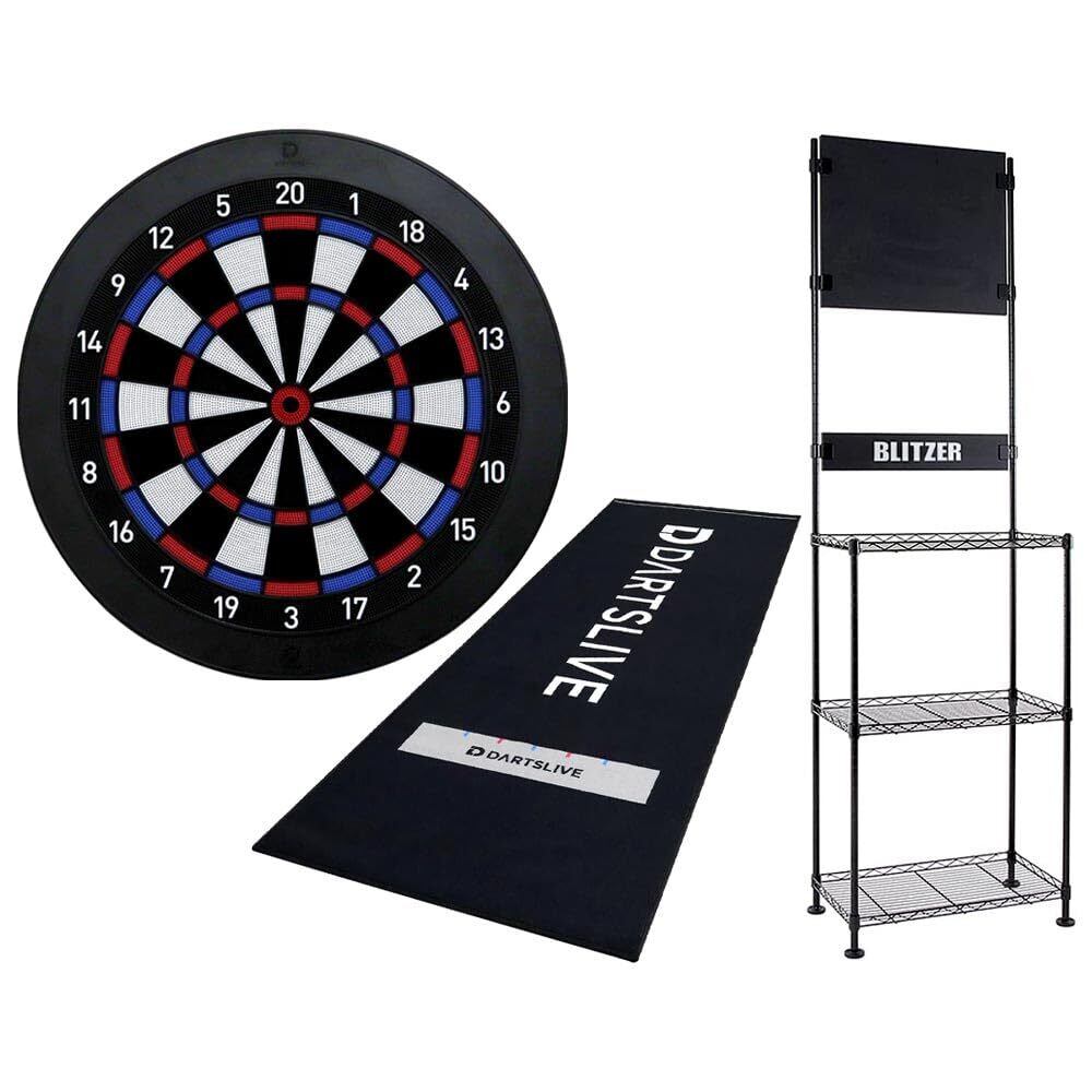 ダーツスタンド:BLITZER BSD21-BK、ダーツマット:防炎ラベル付スローマットを同梱