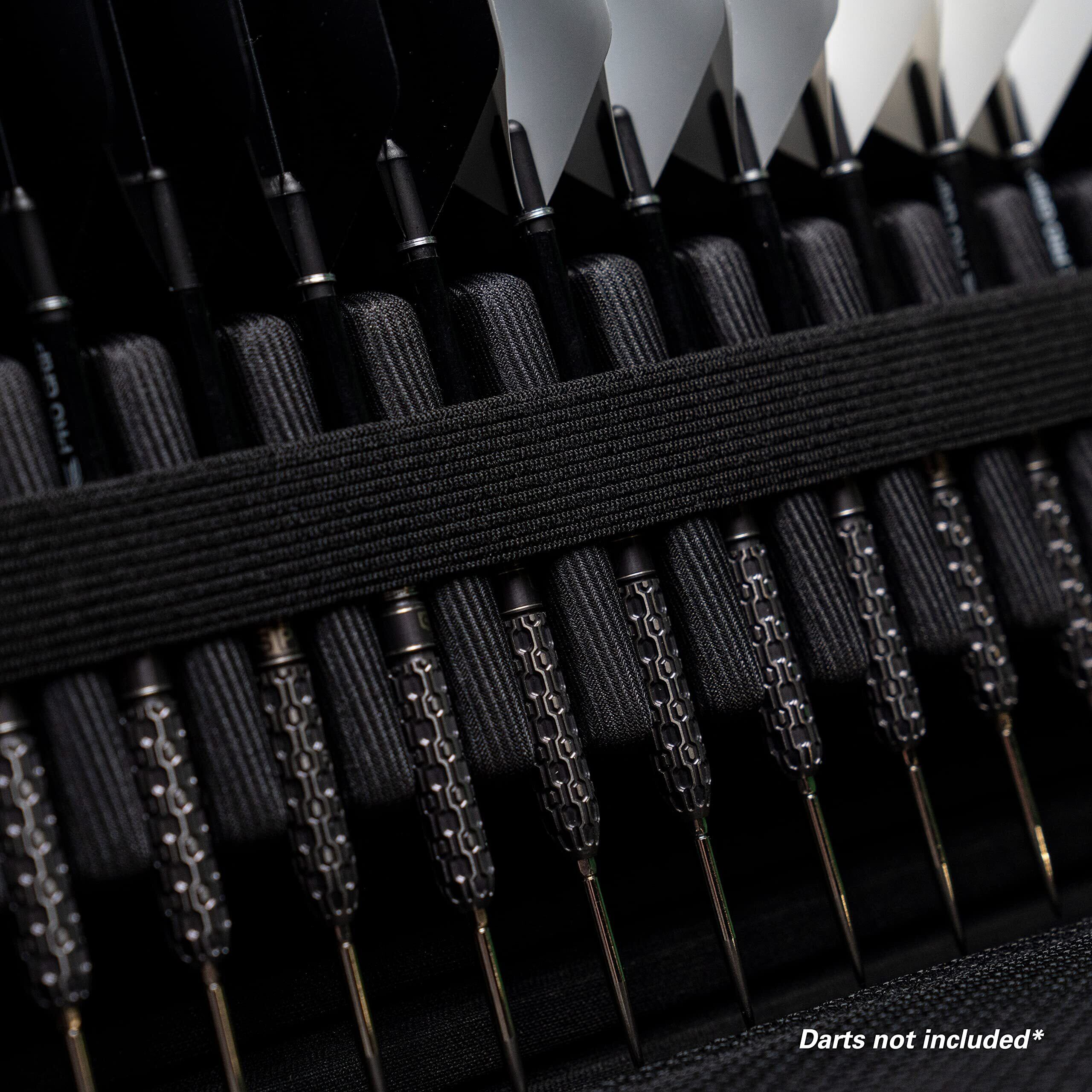 クッション性のある堅牢な素材で外部の剛性を確保しつつ、ダーツをそのまま固定しての収納が可能。