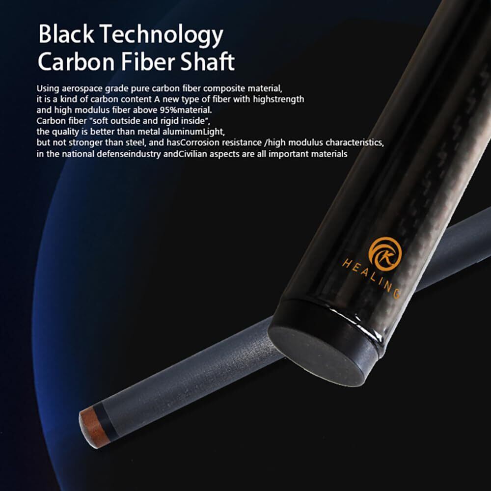 【新春セール】KHEALING ビリヤード キュー カーボン 電木皮頭 黒電木先角 T 700カーボンファイバー 49インチ ビリヤード用品 1/3ロングジャンプキュー ジョイント ハンドメイド 真っ直ぐ 適球類/黒八、九球 13oz オンス 収納ケース付き (Bakelite tip) | wakuwakuland