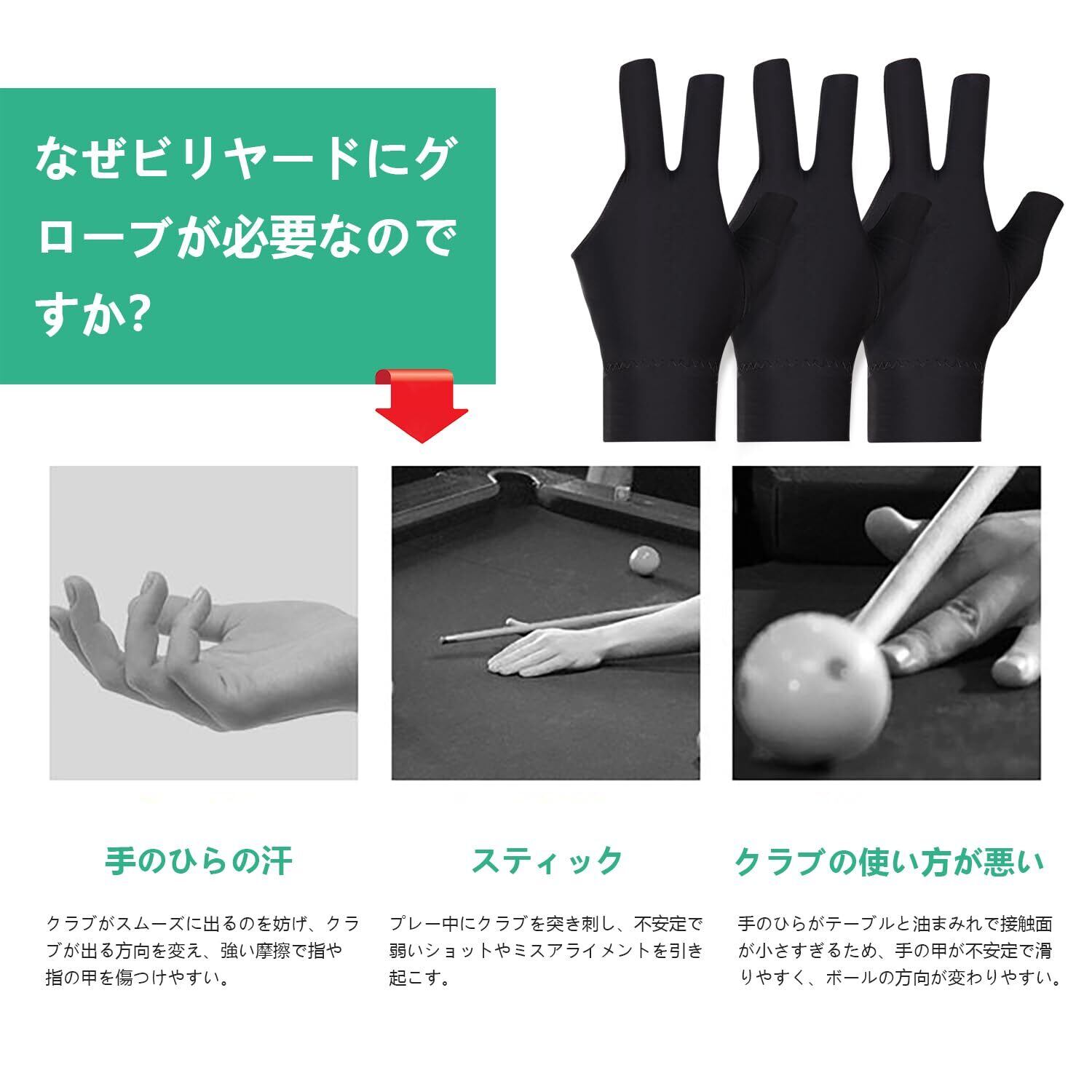 ビリヤード グロー 3 本指グローブ プール手袋 【3個入り】高弾力 耐磨耗性 男女兼用 左手用 ビリヤードの訓練装置 高い伸縮性滑り 通気性 持ち運び便利