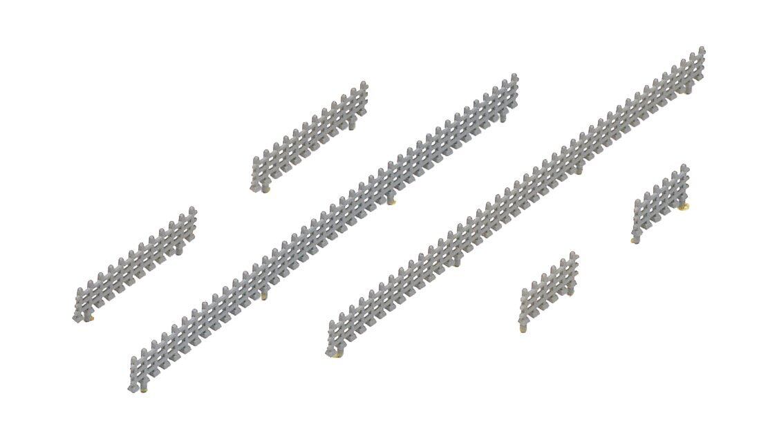 ・【高いリアリズム】: コンクリート製の防護柵は、実物さながらの質感で再現されており、レイアウトにリアルな風合いをもたらします。鉄道模型の世界観が一層深まります!