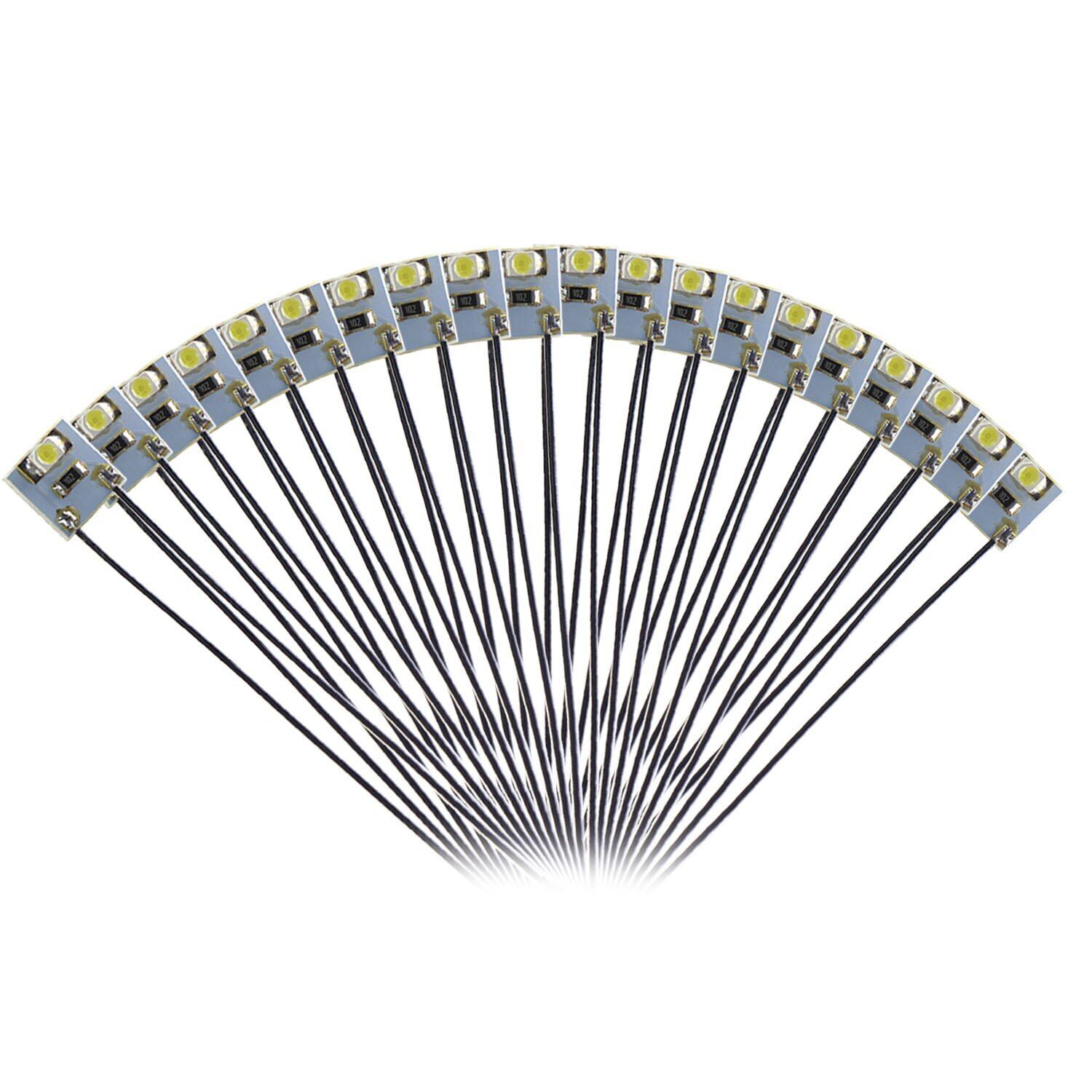 【新春セール】配線付き SMD 3528 チップLED 白 抵抗付属 20本入り 電車模型 鉄道模型 建物模型 模型電飾 ジオラマ