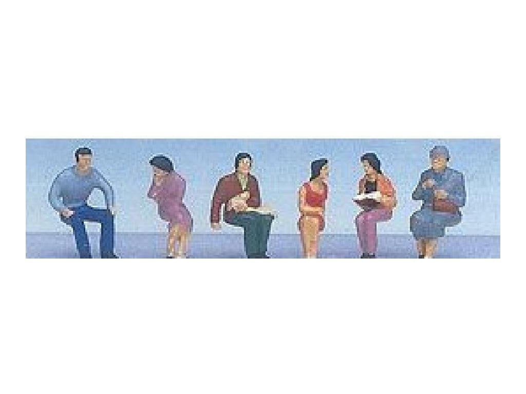 座り姿勢の人々のセット。客車内の座席や駅のベンチに。
