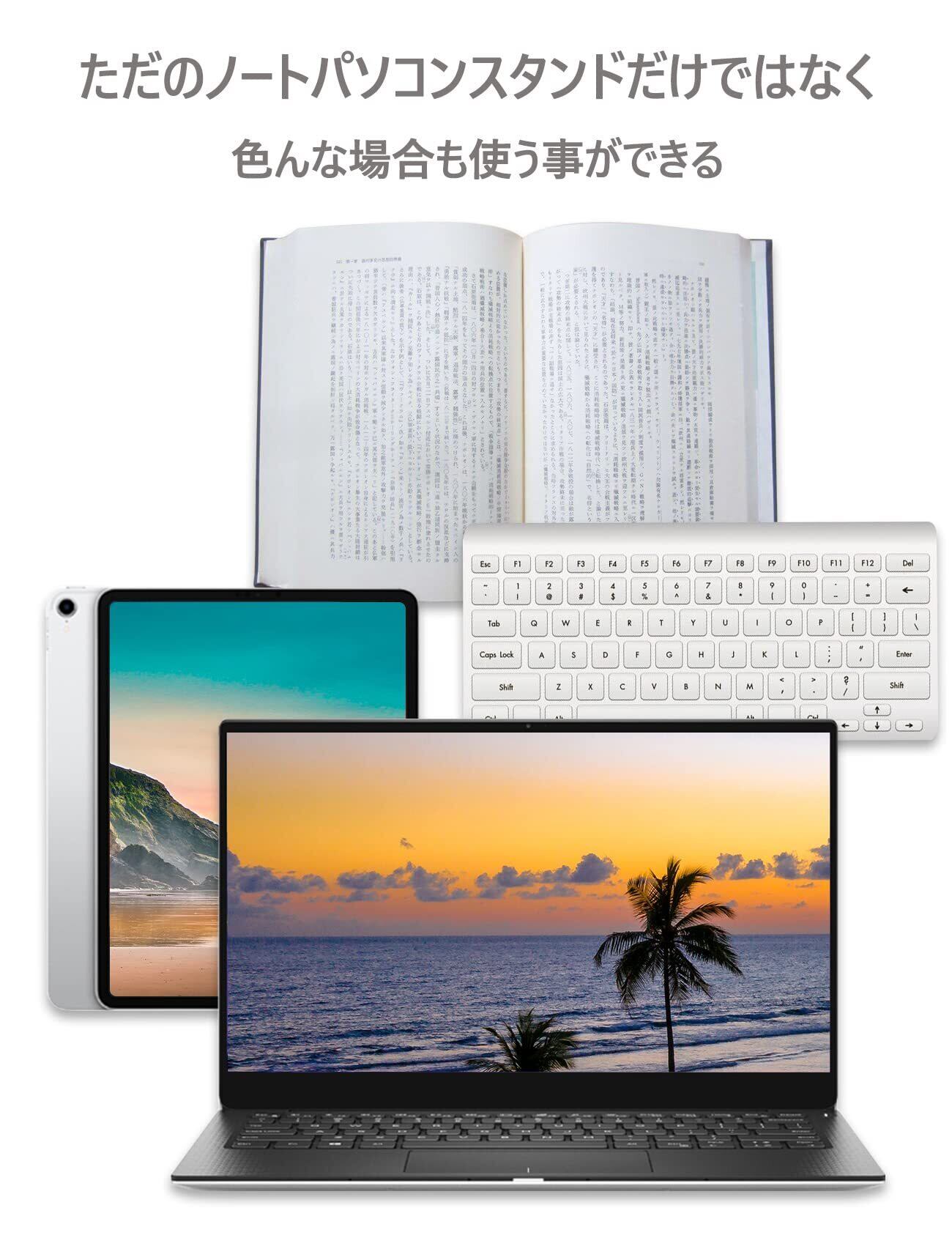 ・【滑り止め機能】: スタンドには滑り止めが付いており、ノートパソコンをしっかり支え、不安定さを解消します。デスクの上で安心して使用できます。