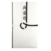 御霊前は主に通夜・告別式に用いられる表書き。本品は蓮の柄(仏様の象徴)入りため仏式用。