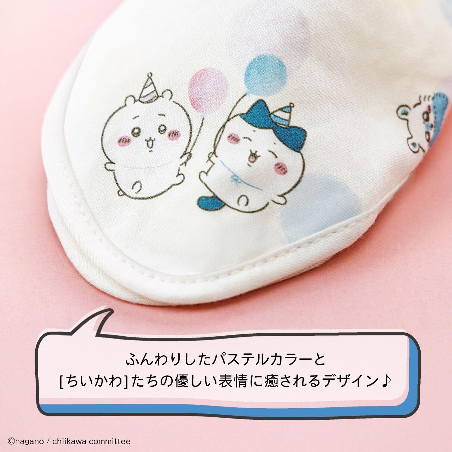ふんわりしたパステルカラーと[ちいかわ]たちの優しい表情に癒されるデザイン。散りばめられたちいかわや仲間達のイラストが、お子様の健やかな成長を応援してくれます。