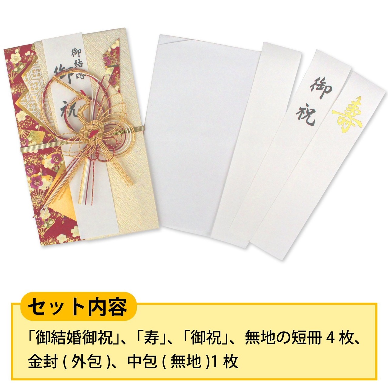 セット内容:「御結婚御祝」「寿」、御祝」無地の短冊4枚、金封(外包)、中包(無地)1枚
